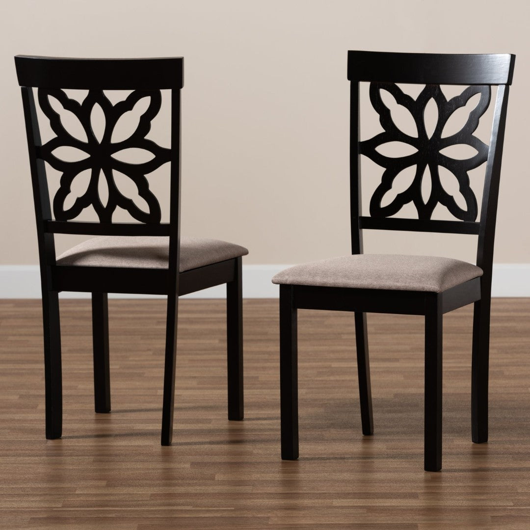 Refresh your dining area with the Samwell dining chair—a blend of modern lines and everyday comfort that lifts both casual meals and formal gatherings. Crafted with solid wood construction and a softly padded fabric seat, this two-piece set offers a refined silhouette, an open feel from the cut-out back design, and a durable finish that complements a variety of interiors.