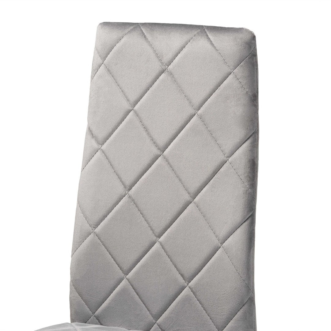 Bring modern glam to your dining area with the Blaise dining chair set — a tasteful blend of luxe velvet upholstery, diamond-tufted detailing, and gold-finished metal legs. Designed to be both eye-catching and comfortable, each chair pairs plush foam padding with a sturdy metal and plywood frame for everyday use and special occasions alike. The streamlined silhouette and rich fabric make this four-piece set a refined focal point for contemporary interiors.