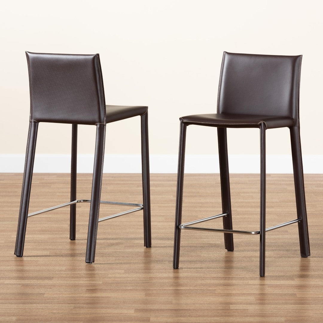 Elevate your kitchen or home bar with this sophisticated 2-piece counter stool set that blends modern industrial style with everyday comfort. These stools feature a sturdy steel frame and plush bonded leather upholstery with contrast white stitching for a refined, durable look. Thoughtfully designed for counter-height seating, they provide supportive foam cushioning and a convenient steel footrest for relaxed dining or entertaining.
