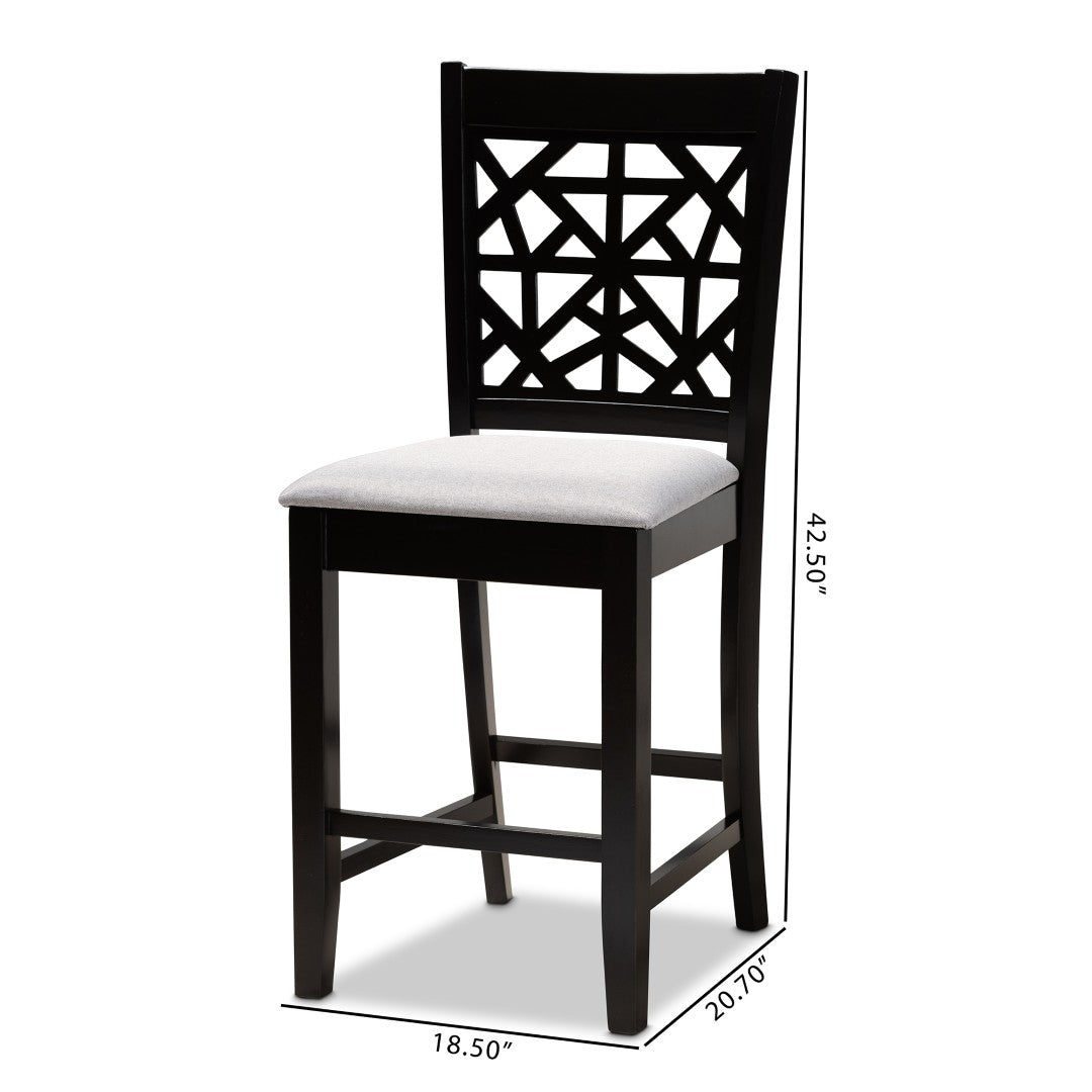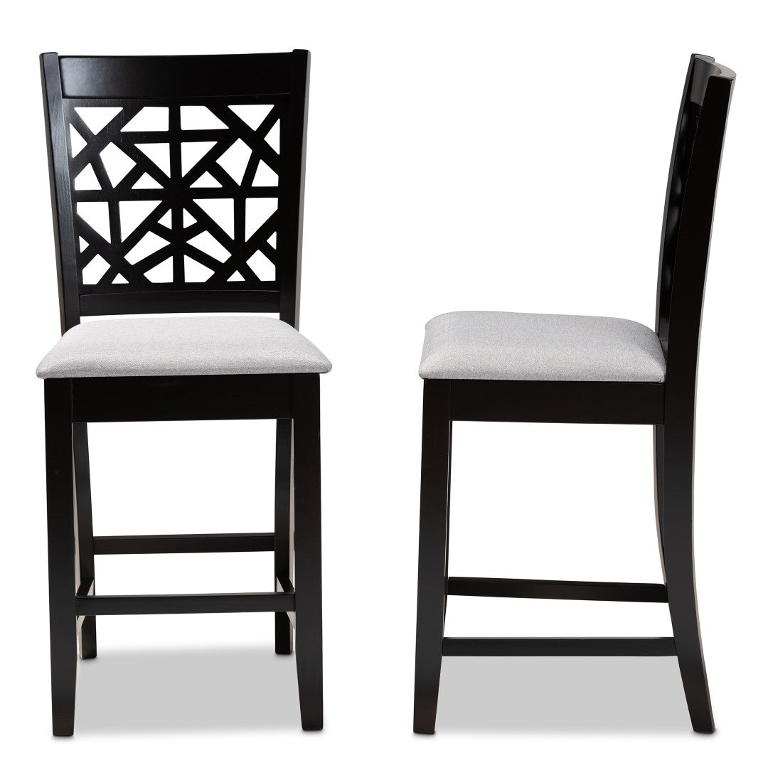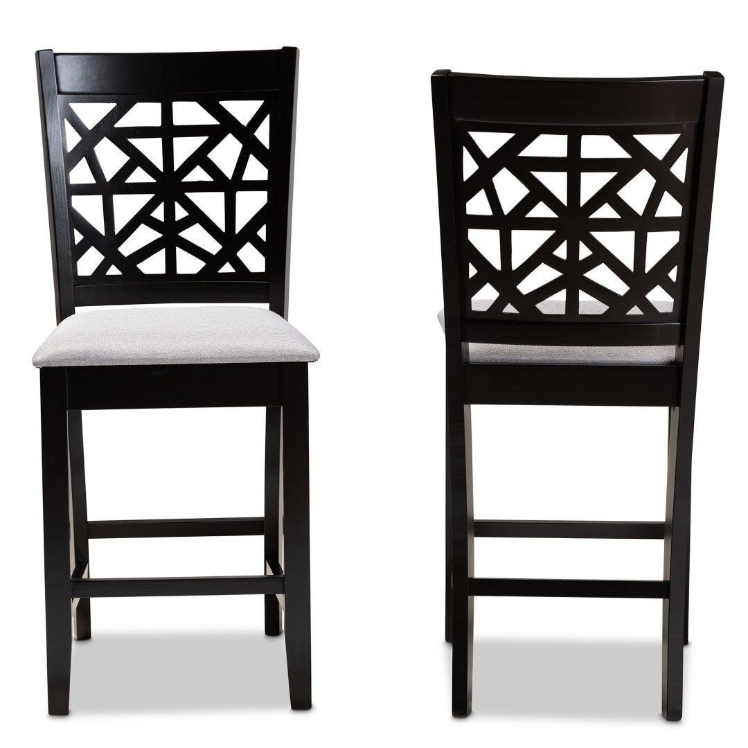 Bring modern flair and everyday comfort to your kitchen or home bar with this two-piece Devon counter-height pub chair set. Each chair combines a durable oak wood frame and espresso brown finish with plush, polyester-upholstered seating and a contemporary cut-out back for visual interest. Thoughtful details—like ergonomic footrests and foam padding—make these chairs as comfortable as they are stylish, while the compact footprint suits smaller dining nooks and counters.