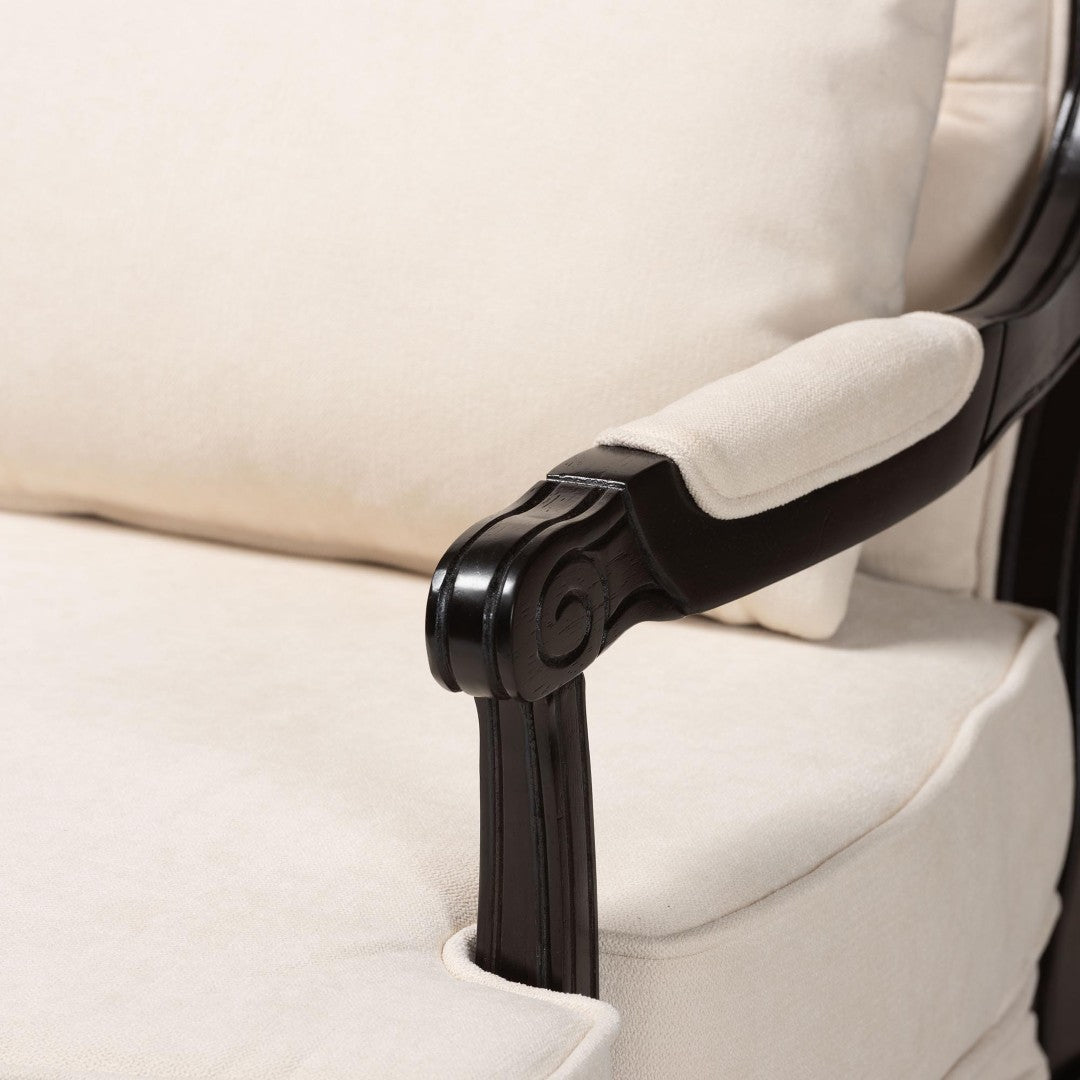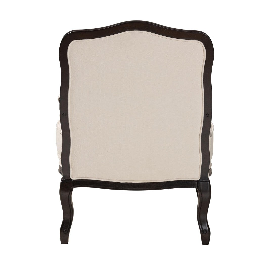 Elevate your living space with the Dion accent chair — a beautifully crafted traditional French piece that blends classic silhouette with comfortable, modern construction. Upholstered in a cream fabric and finished in wenge brown, the chair features graceful scalloped detailing, cabriole legs, and molded wood embellishments that create an elegant focal point while providing supportive seating for everyday use.