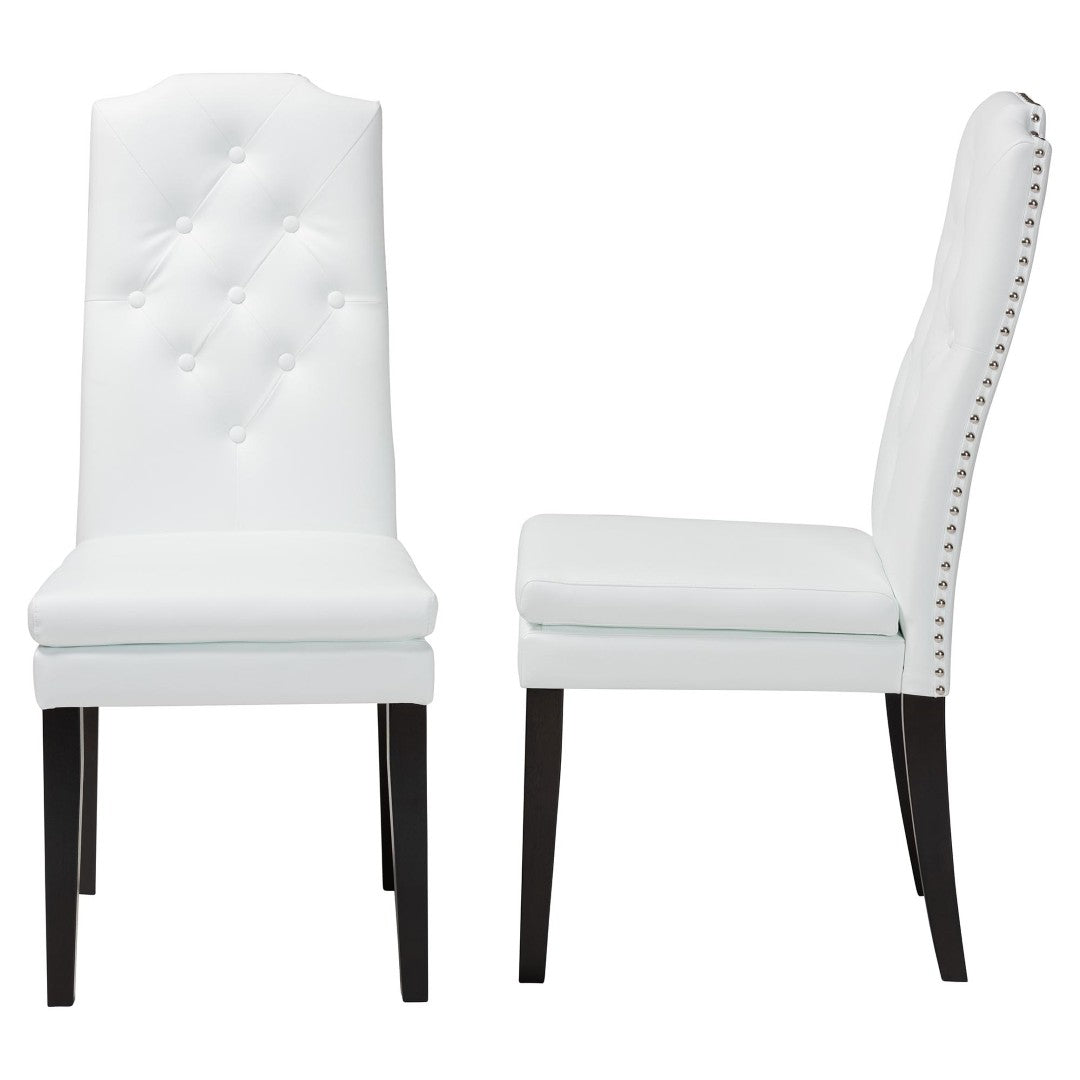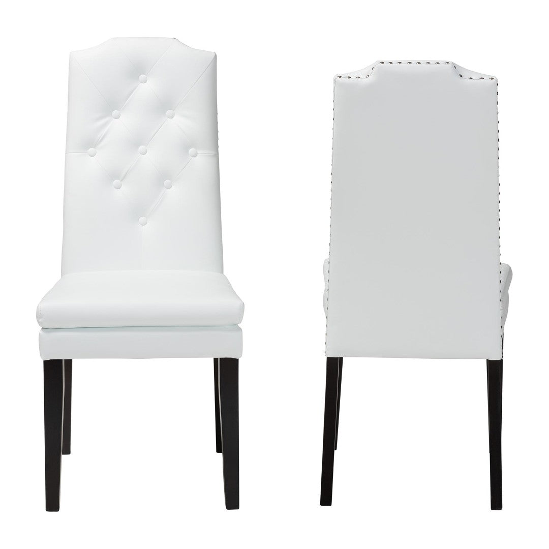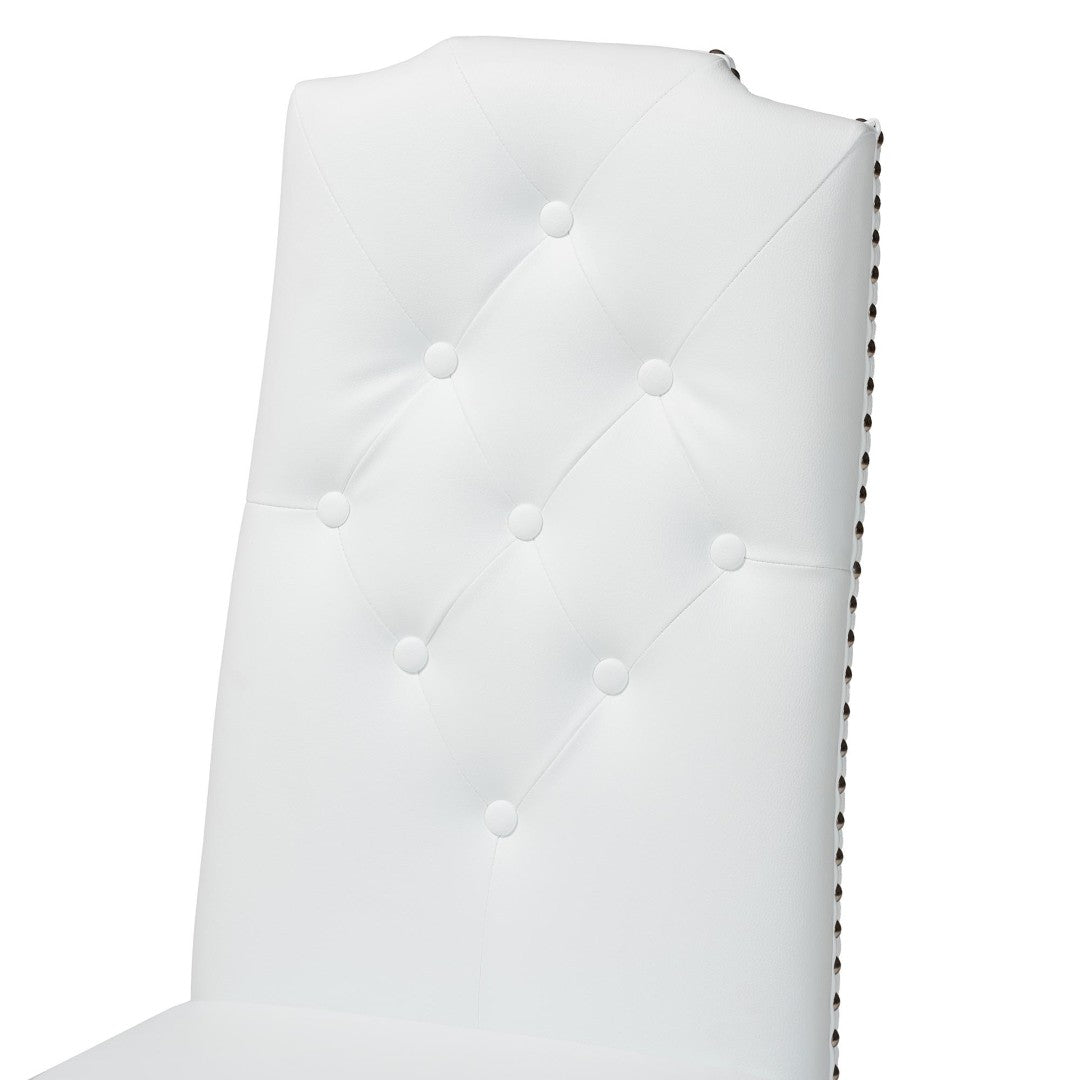 Elevate your dining space with the Dylin dining chair — a refined blend of modern lines and classic detailing that delivers both style and comfort. Upholstered in rich black faux leather with elegant silver nailhead trim and deep button-tufting, this chair offers a sculpted silhouette and generous seating that suit contemporary and transitional interiors alike. Built on a solid rubberwood frame and foam-filled cushions, it balances durability with everyday comfort and requires simple assembly.