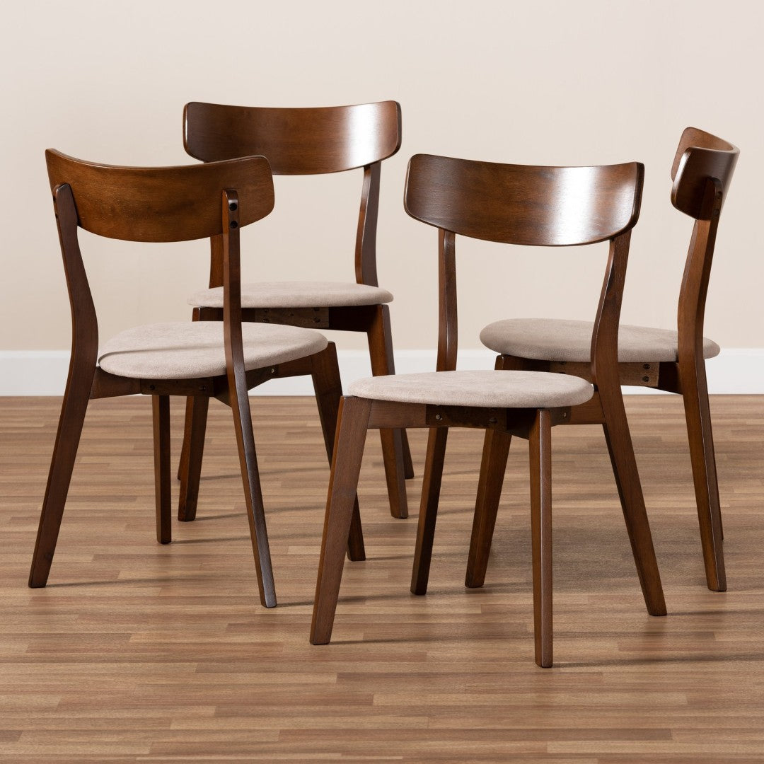 Bring mid-century modern elegance and everyday comfort to your dining space with this 4-piece chair set. Each chair blends warm walnut-brown wood with light beige upholstery, offering supportive curved backs, plush foam padding, and a compact profile ideal for dining rooms, breakfast nooks, or multi-use spaces. Thoughtfully crafted details and a neutral palette make these chairs easy to mix with contemporary or transitional decor.