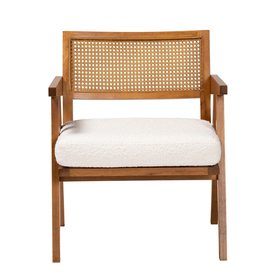 Bring warm, minimalist charm to living rooms, reading nooks, or office lounges with the Jetsam arm chair. Combining Japandi simplicity with cozy boucle upholstery and a woven rattan back, this chair delivers comfortable seating, solid construction, and a refined neutral palette that complements modern and transitional interiors.