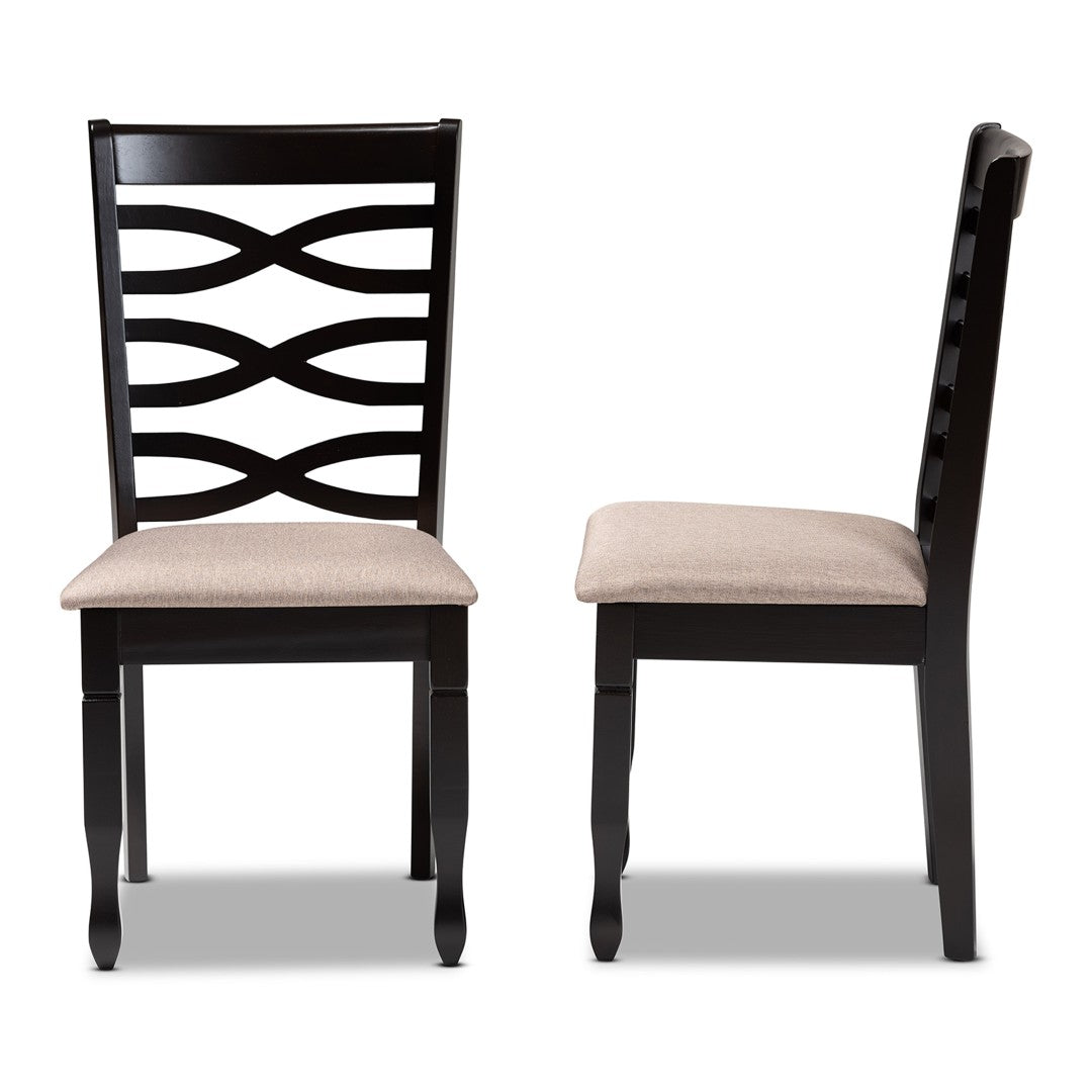 Bring timeless elegance and everyday comfort to your dining room with the Lanier dining chair set. Combining a sculpted silhouette, plush seating, and a rich dark brown wood finish, these chairs elevate both casual family meals and formal dinner gatherings. Thoughtfully designed details — from the cut-out back to tapered legs — give each chair a refined, contemporary look while the padded fabric seat ensures lasting comfort.
