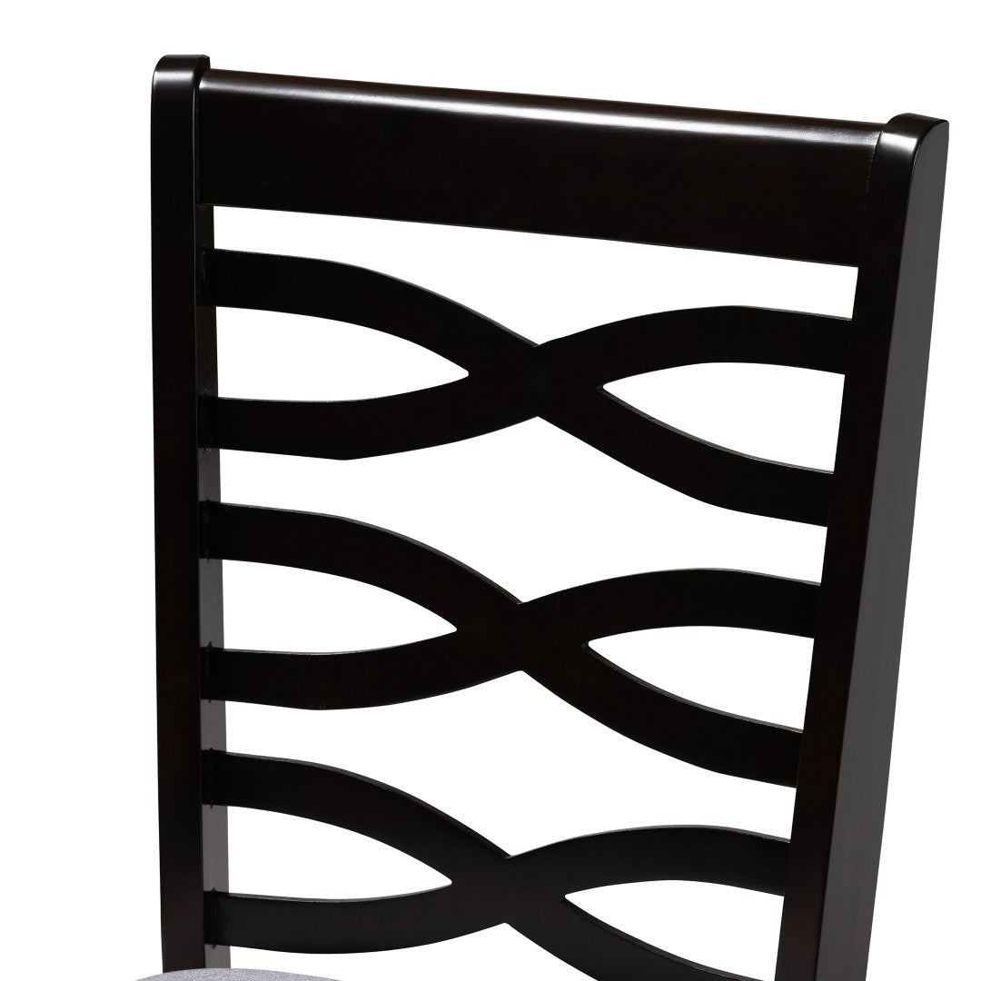 Upgrade your dining area with the Lanier dining chair — a refined blend of modern design and everyday comfort. Its sleek espresso-brown solid rubberwood frame and light gray polyester upholstery create a versatile look that complements a range of dining tables and interiors. Thoughtful details like a plush foam-padded seat, tapered legs, and a decorative cut-out back lend both visual interest and lasting comfort for family meals or entertaining guests.