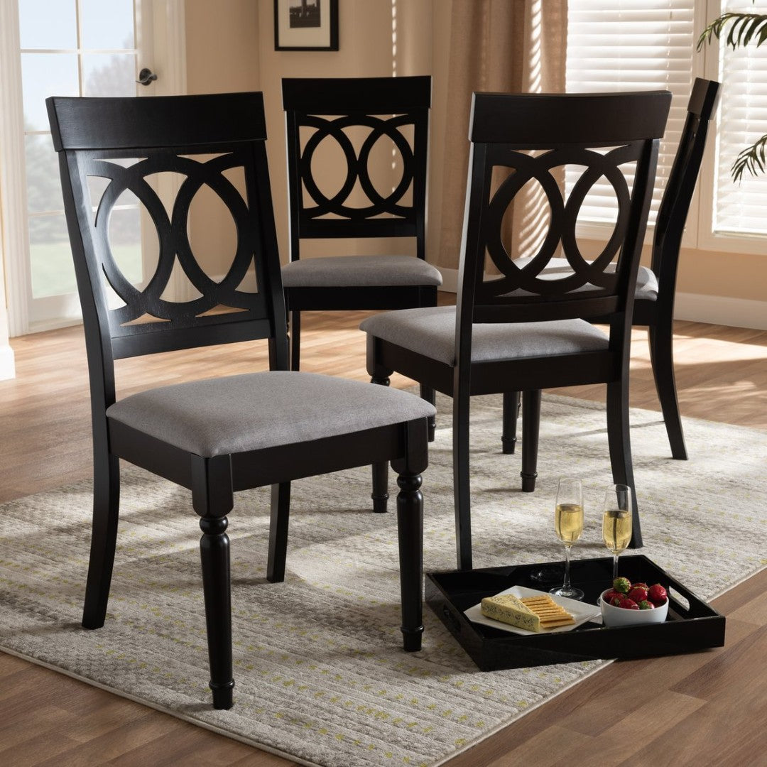 Elevate your dining room with the Lucie dining chair — a refined blend of modern comfort and classic craftsmanship. Built from solid oak with a warm espresso brown finish and upholstered in light grey polyester, this chair pairs a plush foam-padded seat with an eye-catching cut-out back and turned legs for timeless appeal. Thoughtfully designed for everyday use, the Lucie offers both supportive seating and decorative presence for family meals or entertaining.