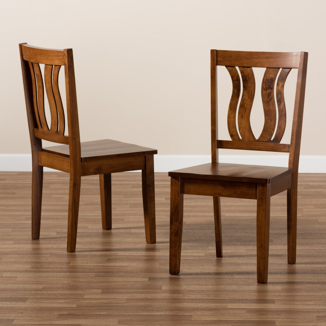 Elevate your dining area with the Fenton dining chairs — a harmonious blend of contemporary design and everyday comfort. Crafted from solid oak and rubberwood with a rich dark brown finish, each chair features a sculpted scoop seat and a striking geometric cut-out back that adds visual interest while supporting an ergonomic posture. Perfect as a pair for intimate dining or as accent seating, these chairs deliver durable construction and refined style.