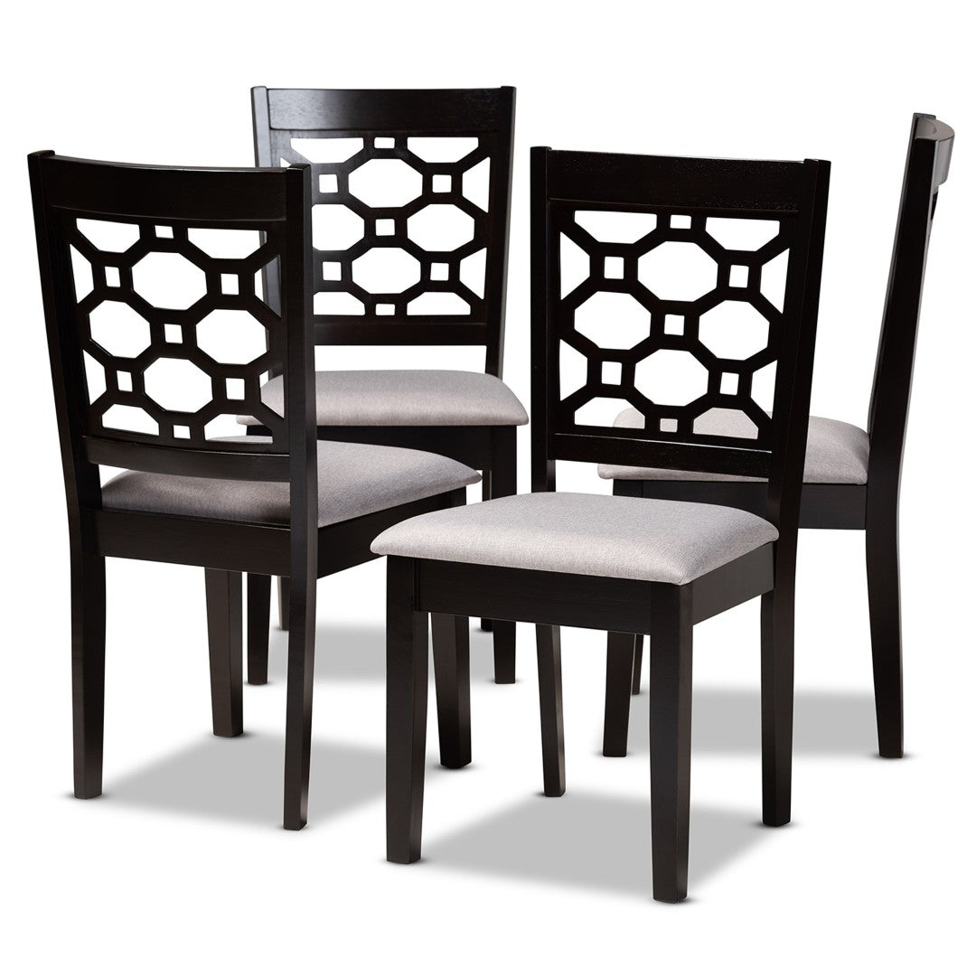 Refresh your dining area with the Peter 4-piece dining chair set — a refined blend of contemporary silhouette and everyday comfort. These chairs pair a warm dark brown wood frame with light grey fabric upholstery and thoughtful details (including a distinctive cut-out back) to create a versatile look that suits both casual meals and formal gatherings.