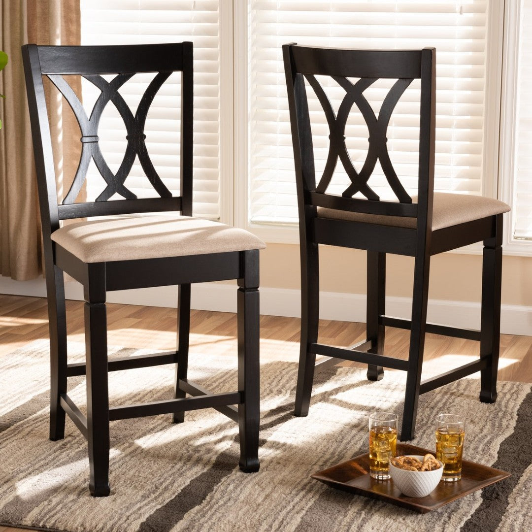 Elevate your kitchen or breakfast nook with these refined counter-height pub chairs that blend contemporary lines with classic detailing. The Reneau chairs feature a durable hardwood frame, plush seating, and a tasteful cut-out back—offering comfort and visual interest for everyday dining or casual entertaining. Crafted with quality materials and a rich espresso finish, they bring warmth and understated sophistication to modern interiors.