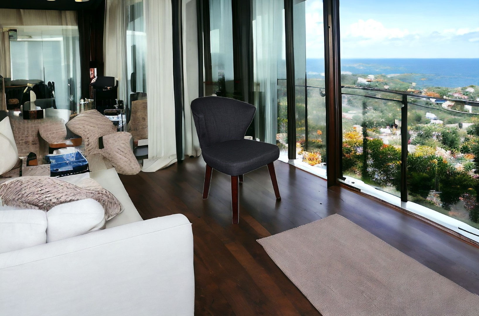 - Solid gray color upholstery adds a touch of elegance to any room.