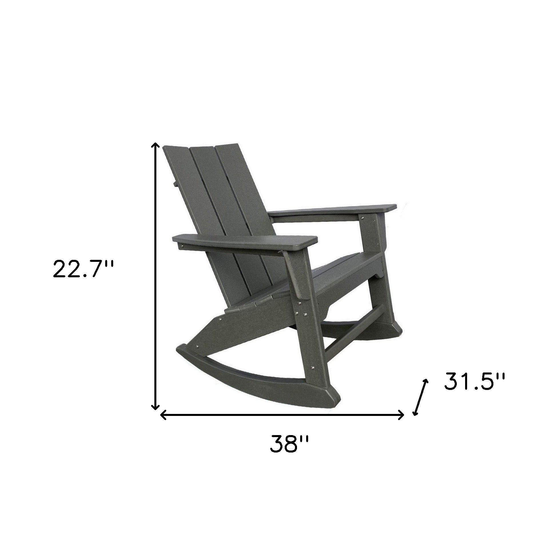 - Modern gray rocking chair with a weight capacity of 300 lbs.