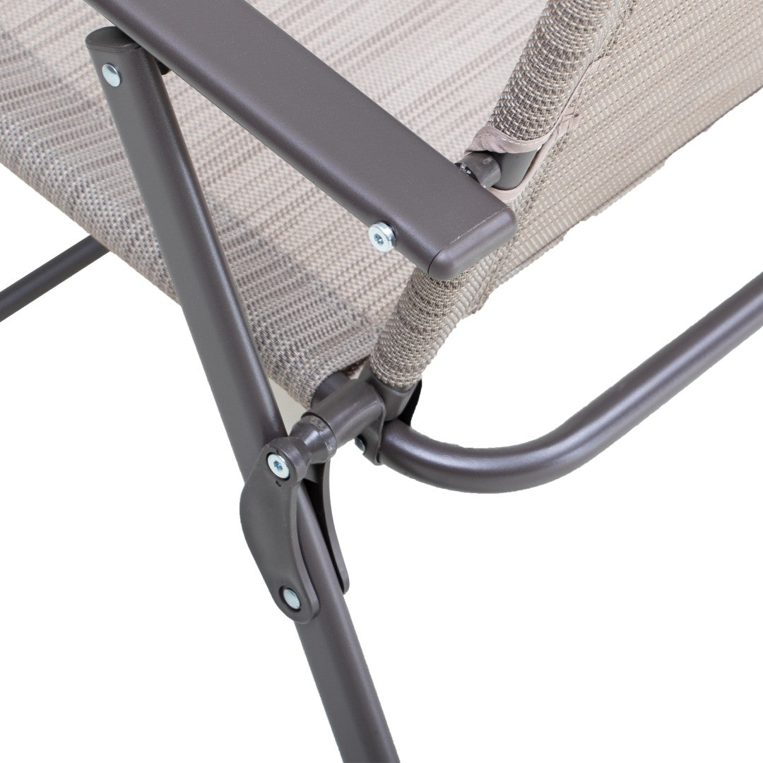 - Crafted from durable textilene fabric, the sling seat is good looking, comfortable, and easy to maintain.