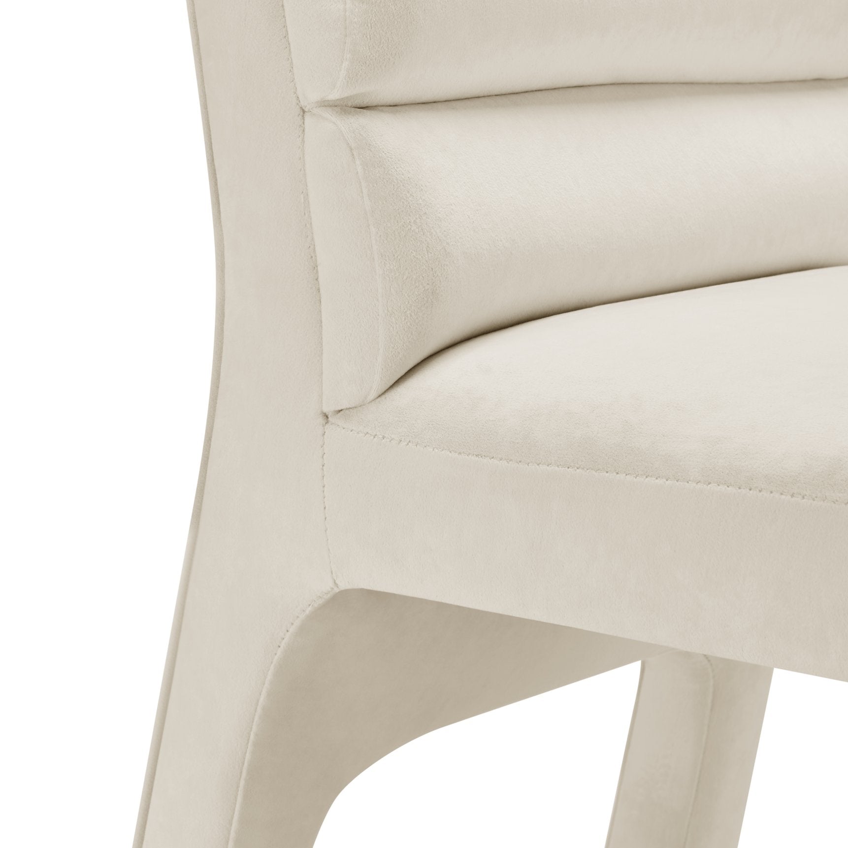 - For a contemporary feel, this modern velvet chair exudes an upscale vibe with its statement-making hues and clean lines. Easy-care velvet fabric covers plush high-density foam cushion. It's perfect for high traffic residential use. Plastic glides are included for floor protection.