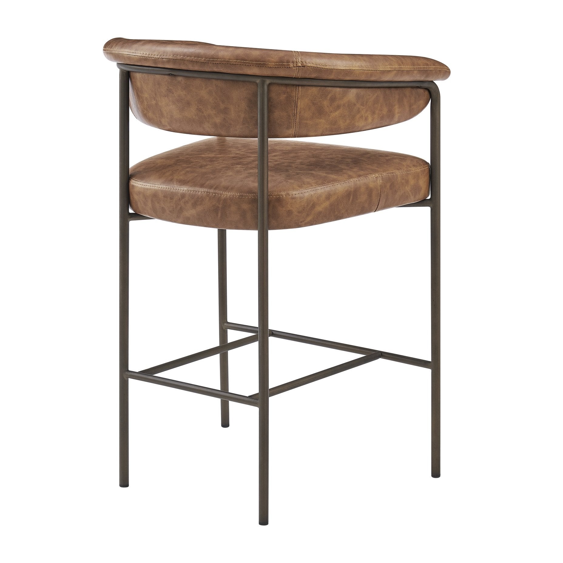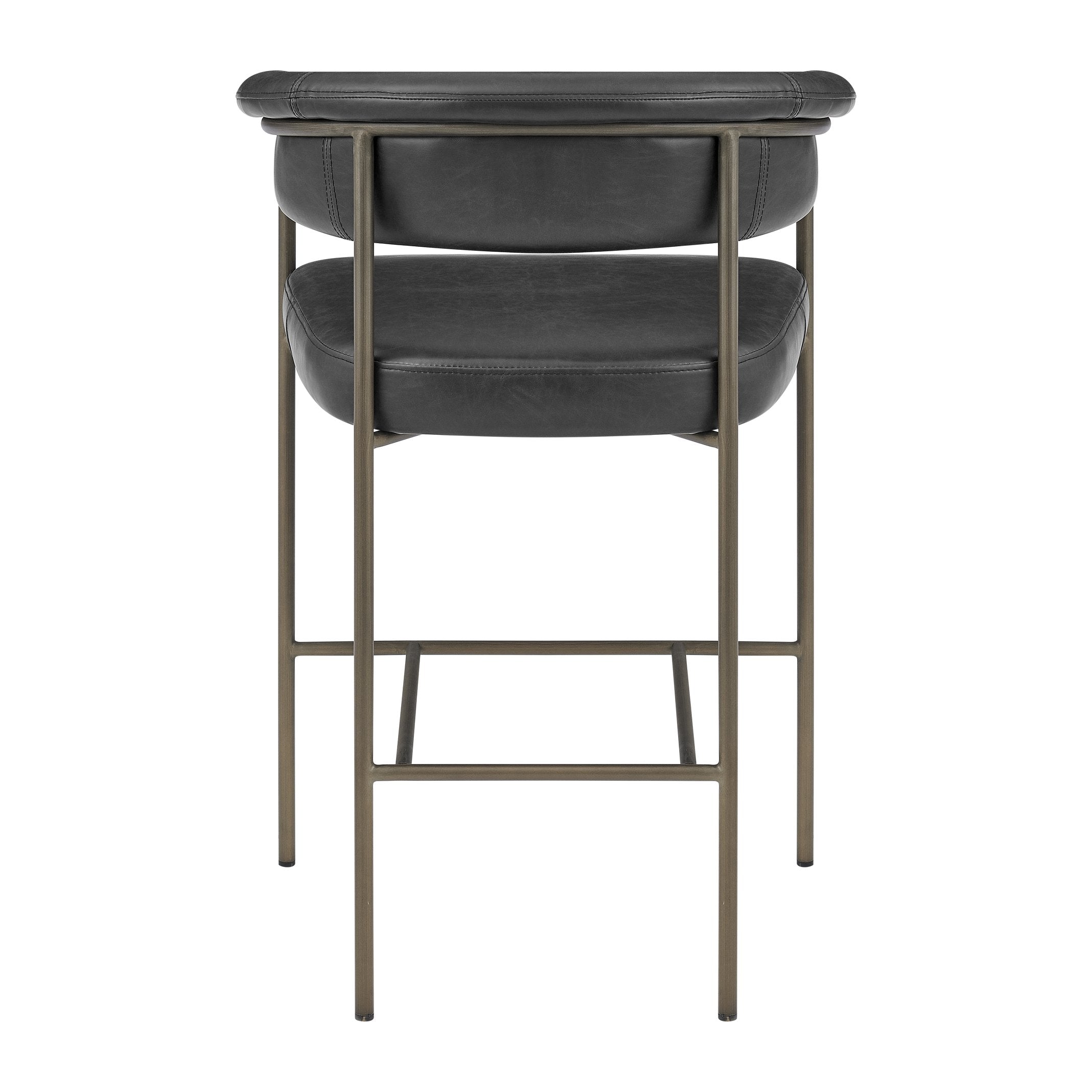 - With a 26.5" seat height and a modern aesthetics, this stool combines comfort and chic styling. Upholstered in faux leather with a plush high-density foam cushion, it's the perfect addition for a touch of livable luxury. Includes plastic glides for floor protection.