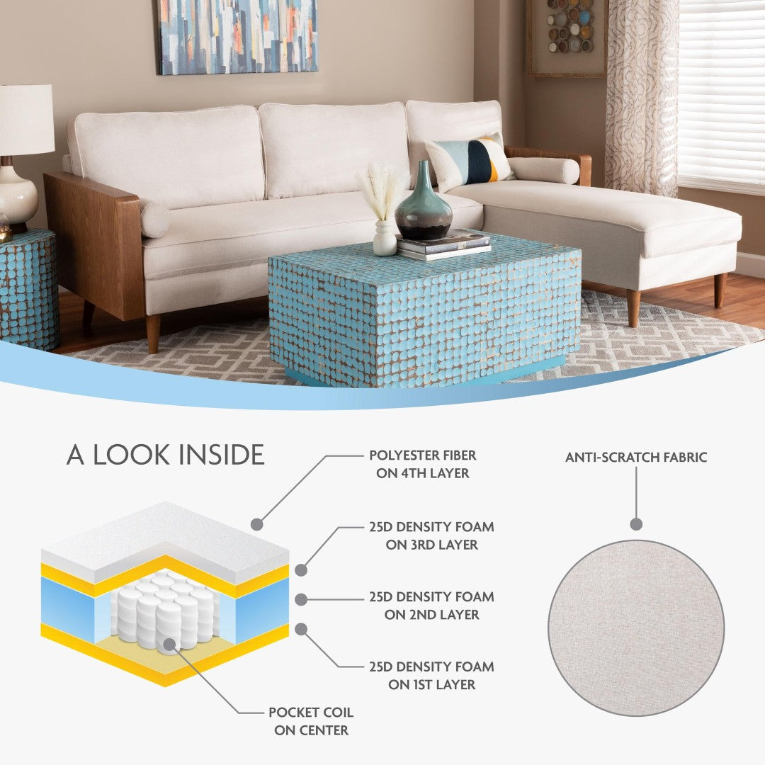 - Mid-century modern design: Right-facing chaise configuration, streamlined track arms, and walnut-brown tapered legs for an authentic vintage look.