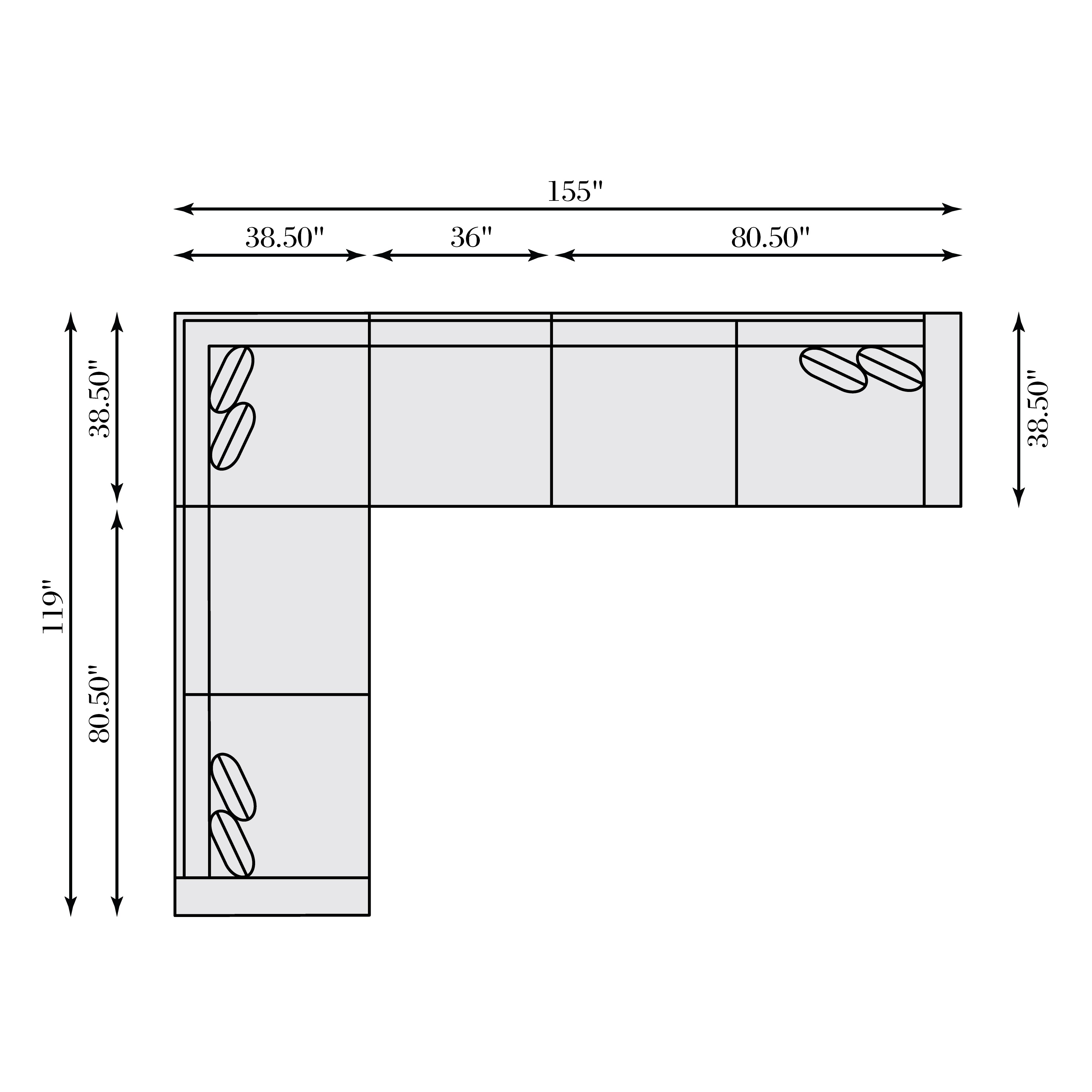 - Dimensions: 155"W x 119"D x 33"H (overall)