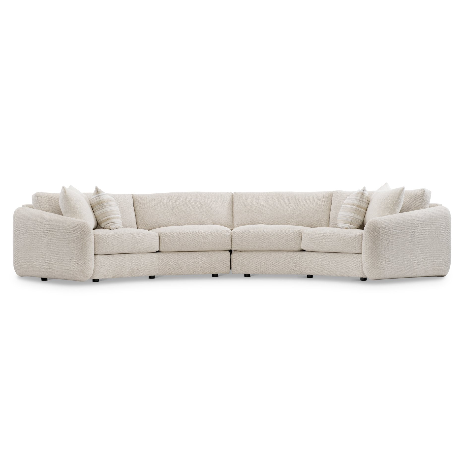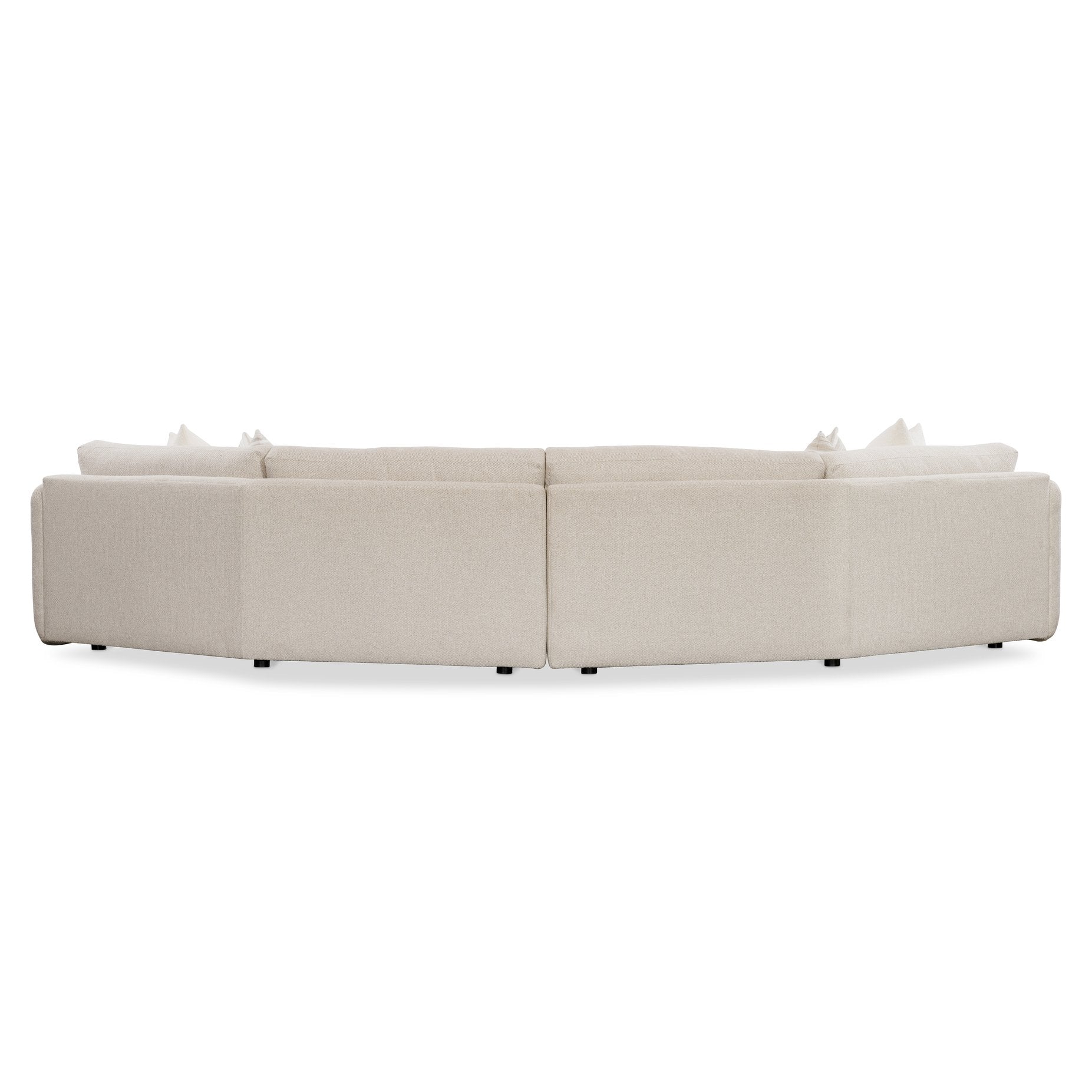 The Soleil fabric sectional reinterprets midcentury pit seating with a bold crescent silhouette that balances dramatic style and exceptional comfort. Its exaggerated curve and angled back create an inviting, lounge-friendly profile ideal for conversation or relaxed reclining, while tailored details keep the overall look clean and modern—perfect for contemporary living rooms or open-plan spaces.