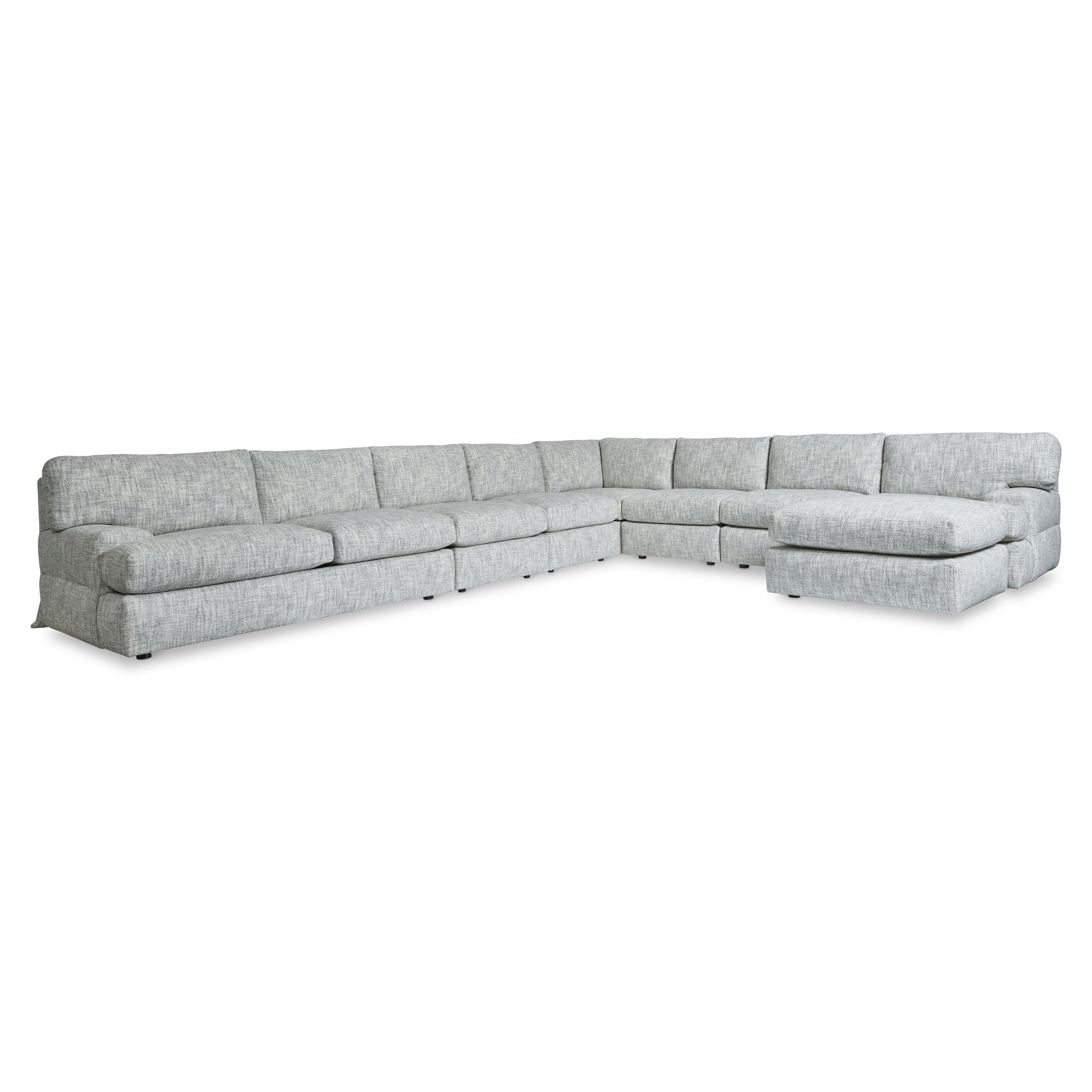 The Serena sectional blends timeless tailoring with contemporary comfort, offering a sleek low profile and ample seating depth for everyday relaxation or stylish entertaining. Made to order in your choice of fabric, this five-piece configuration provides both versatility and a refined silhouette—ideal for living rooms seeking modern elegance with cozy support.
