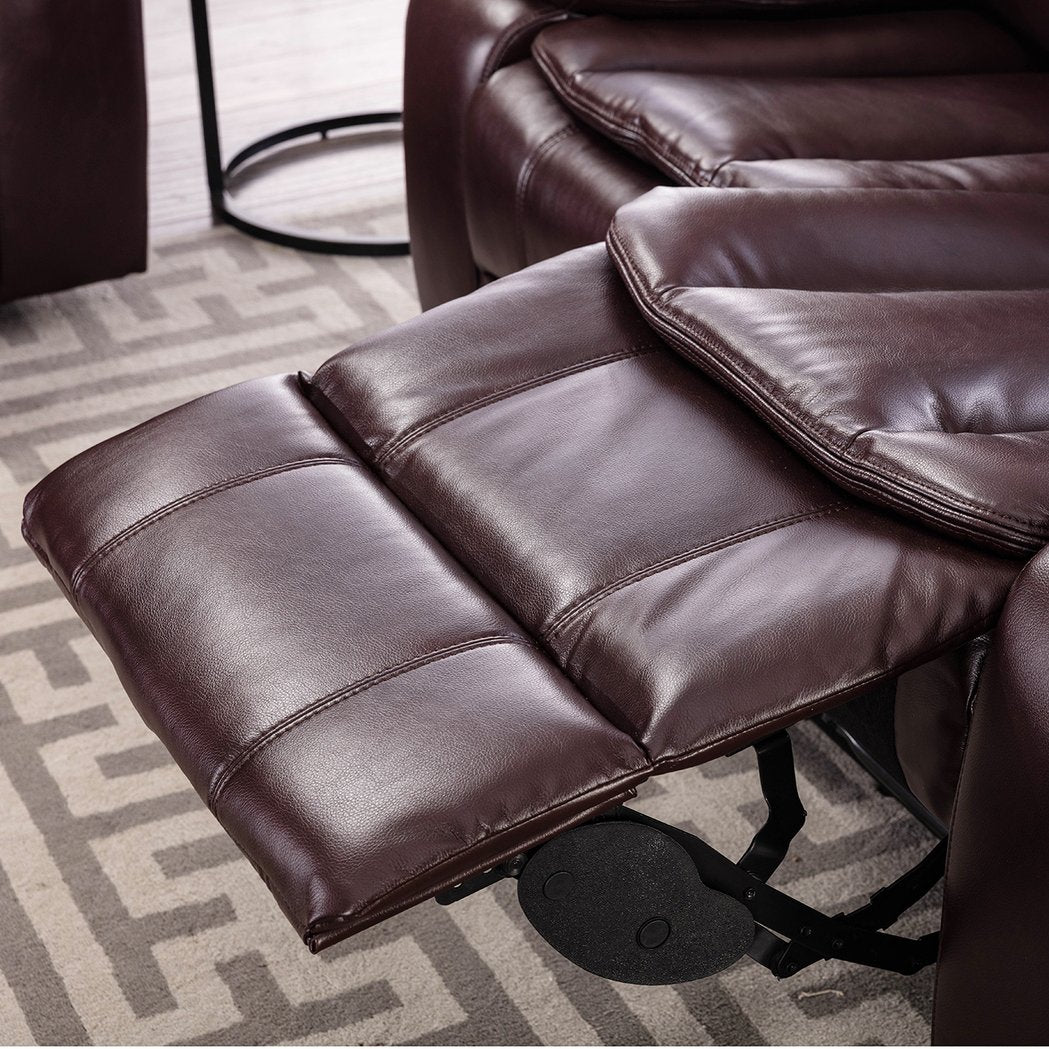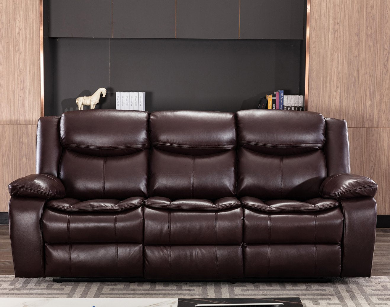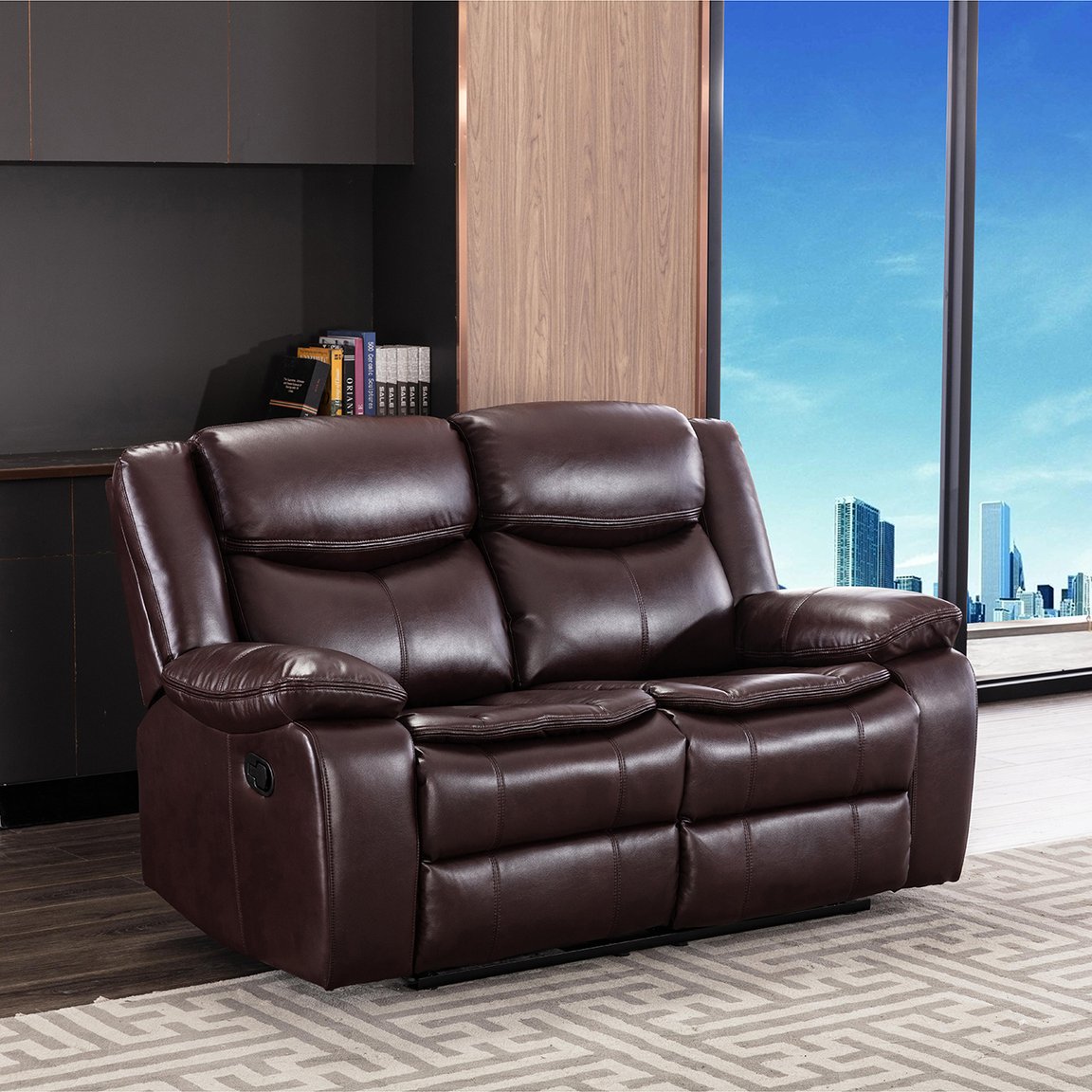 Upgrade your living space with this stylish and comfortable 1+2+3 manual reclining sofa set in rich brown leather upholstery. Designed for everyday relaxation and built to last, the set combines solid construction, thoughtful ergonomics, and convenient features—making it ideal for family rooms and entertainment spaces. The blend of dark brown and cream tones, pillow-top arms, and cushion backs deliver a polished look while the manual reclining function provides customizable comfort for every seat.
