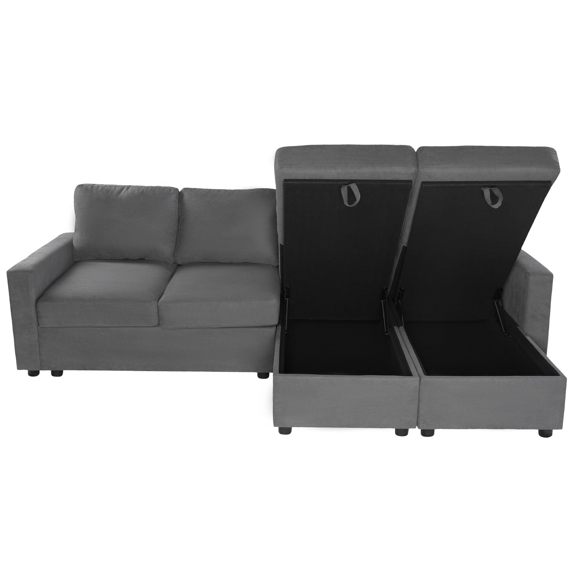 - Two Spacious Hidden Storage Chaise Lounges - This sectional sofa is designed with two generously sized hidden storage compartments (46.1”*20.5”*7.1”) beneath each chaise lounge. Unlike traditional sofas, these compartments open smoothly with a pull-strap mechanism, offering ample room to store blankets, bedding, off-season clothes, toys, or other household essentials.