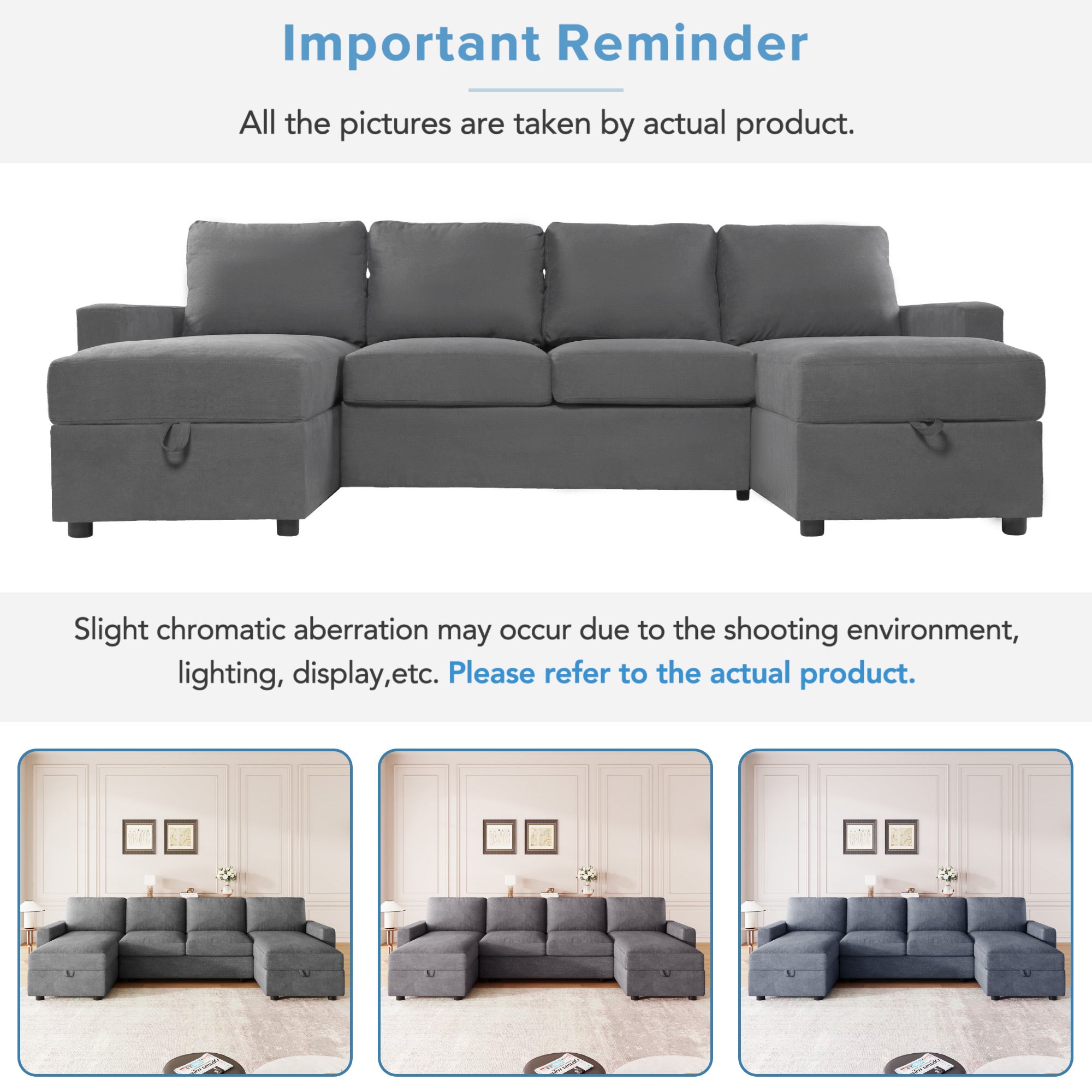 Experience versatile comfort and contemporary style with this convertible U-shaped sectional sofa. Thoughtfully designed for modern living, it features two spacious storage chaise lounges, modular pieces that reconfigure to suit any room layout, and convenient charging with four integrated USB ports. Upholstered in durable twill polyester with high-density foam and pocket-spring seating, this sofa balances everyday durability with plush comfort for lounging, entertaining, or overnight guests.