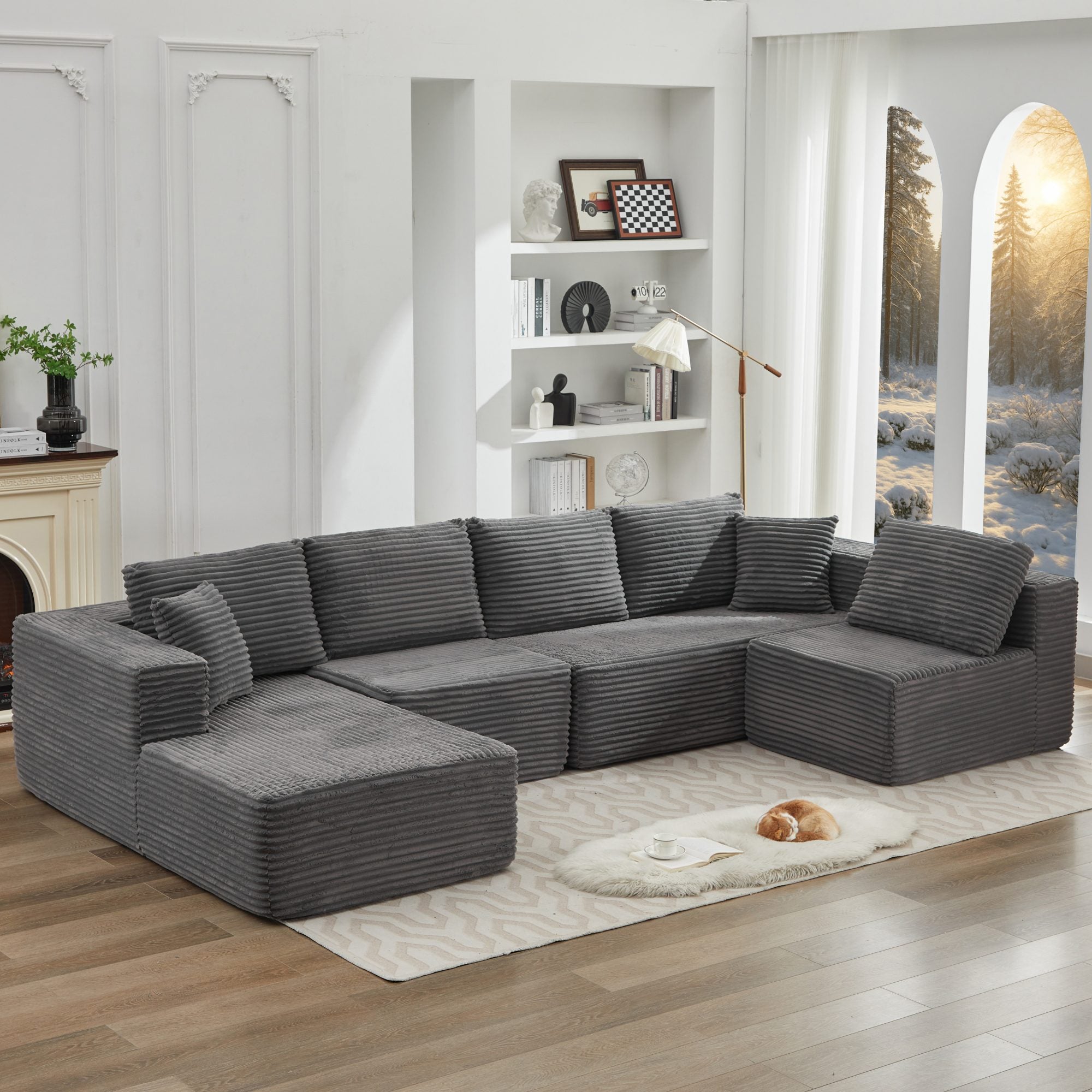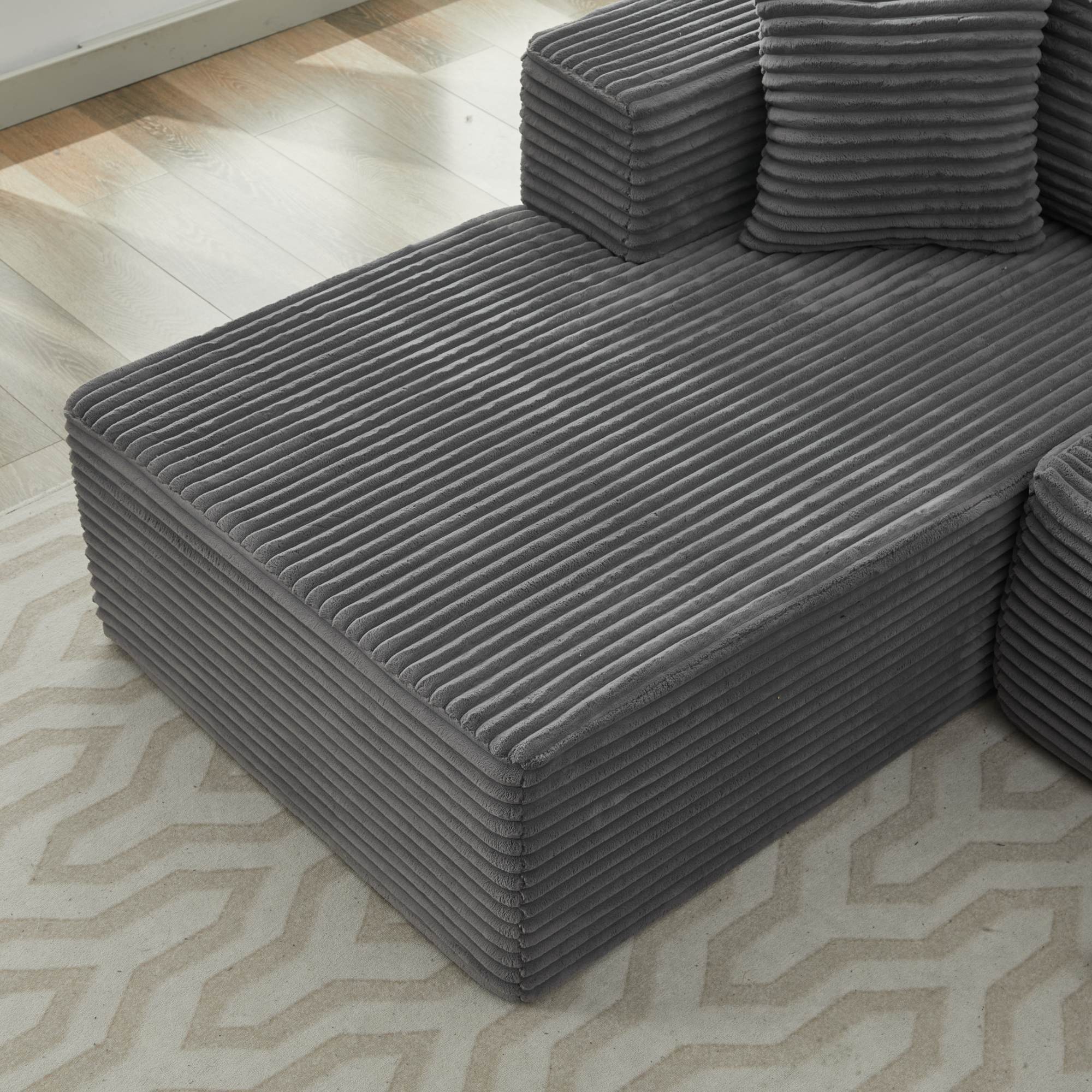 Sink into cloud-like comfort with this modern L-shaped sectional designed for effortless living. Plush corduroy upholstery, deep seating, and a modular layout let you tailor the sofa to your space and routine — no tools or assembly required. Ideal for living rooms, apartments, guest areas, or play spaces, this sectional blends soft texture, practical durability, and streamlined styling for everyday relaxation.