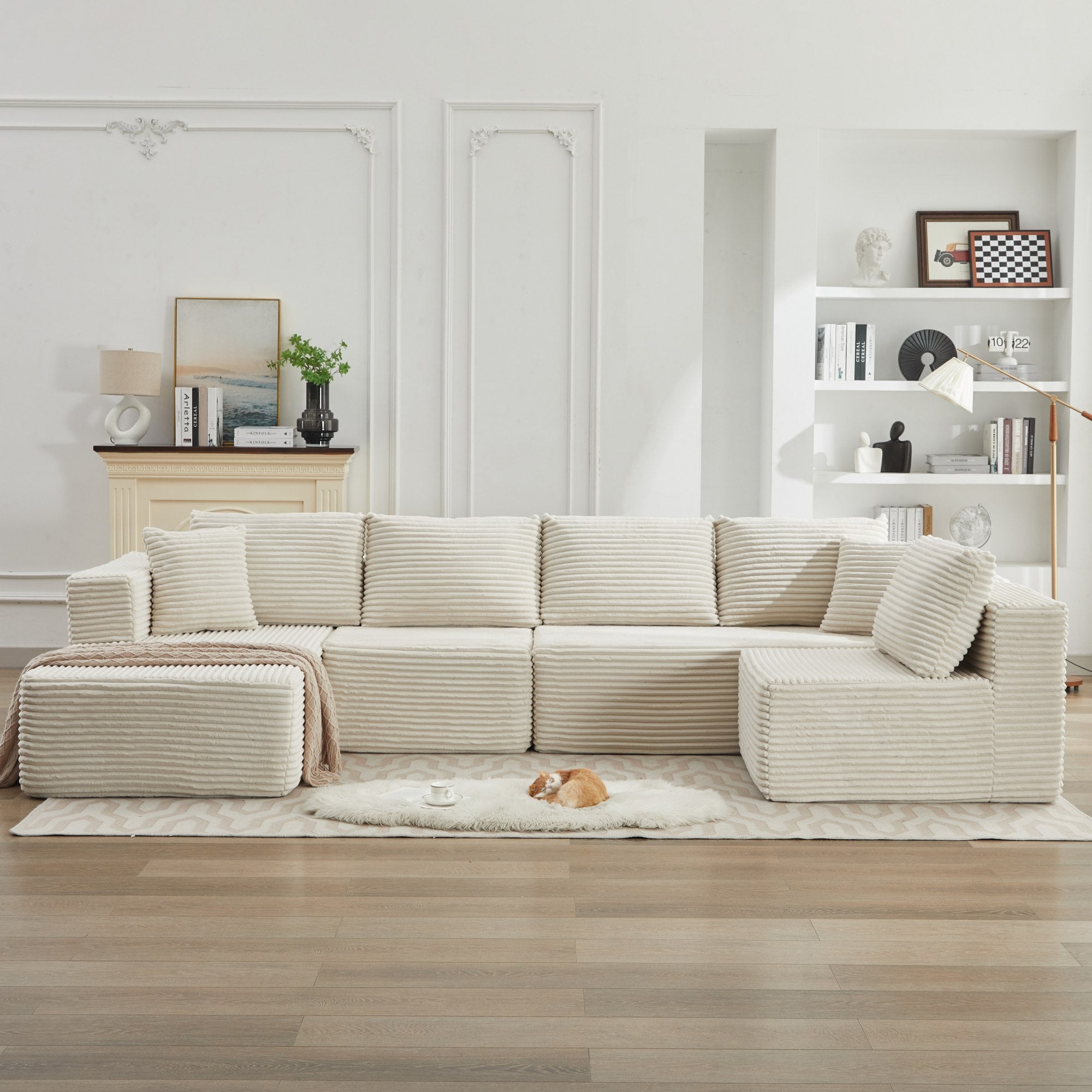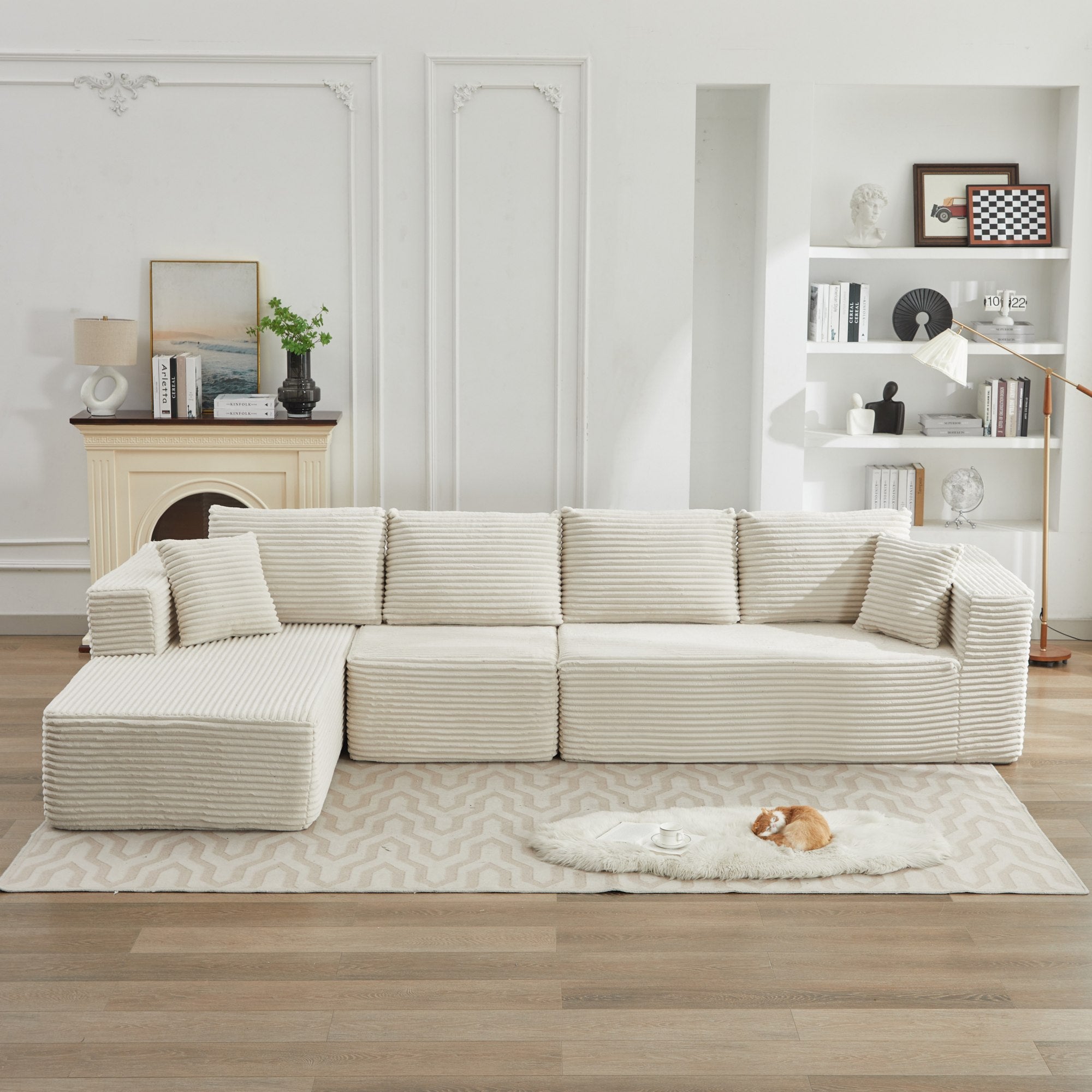 Sink into cloud-like comfort with this modern L-shaped sectional crafted for everyday living and effortless style. Wrapped in plush corduroy, the modular design adapts to your space — from compact apartments to spacious living rooms — while delivering deep seats and a soft, inviting texture that keeps guests and family lingering longer. No assembly required means you’ll be relaxing in minutes, and the breathable, stain-resistant fabric makes maintenance simple.