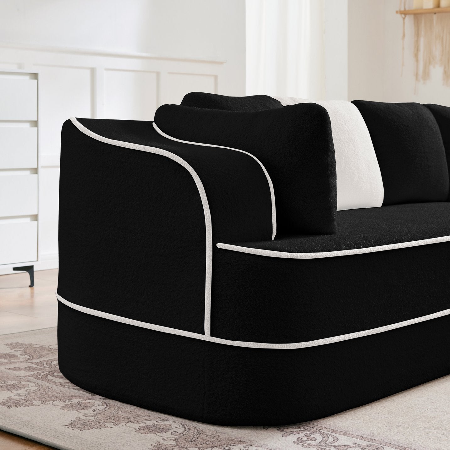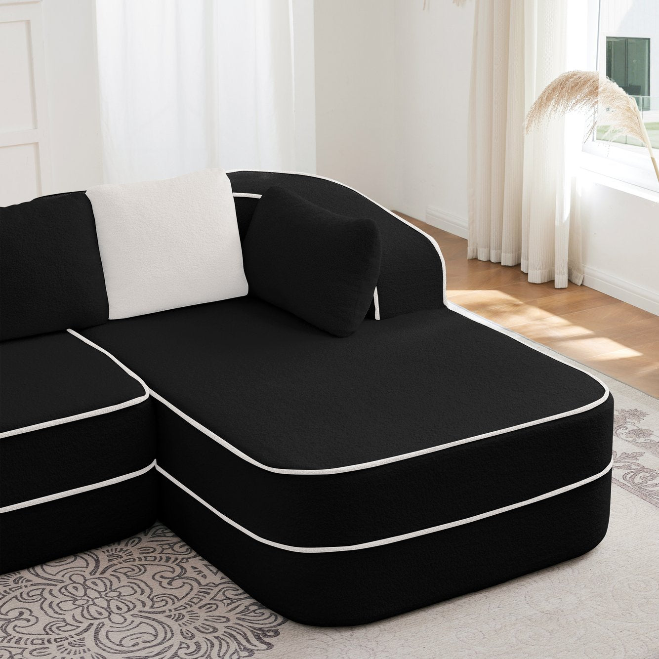 Sink into cloud-like comfort with this 106" L-shaped teddy fabric sectional—designed for relaxed living and effortless style. The contrast-color details and curved armrests provide a modern, inviting silhouette while the plush teddy velvet and high-resilience foam deliver long-lasting softness and support. Ready to use out of the box, this modular boneless sofa adapts to your space and lifestyle for lounging, entertaining, or movie nights.