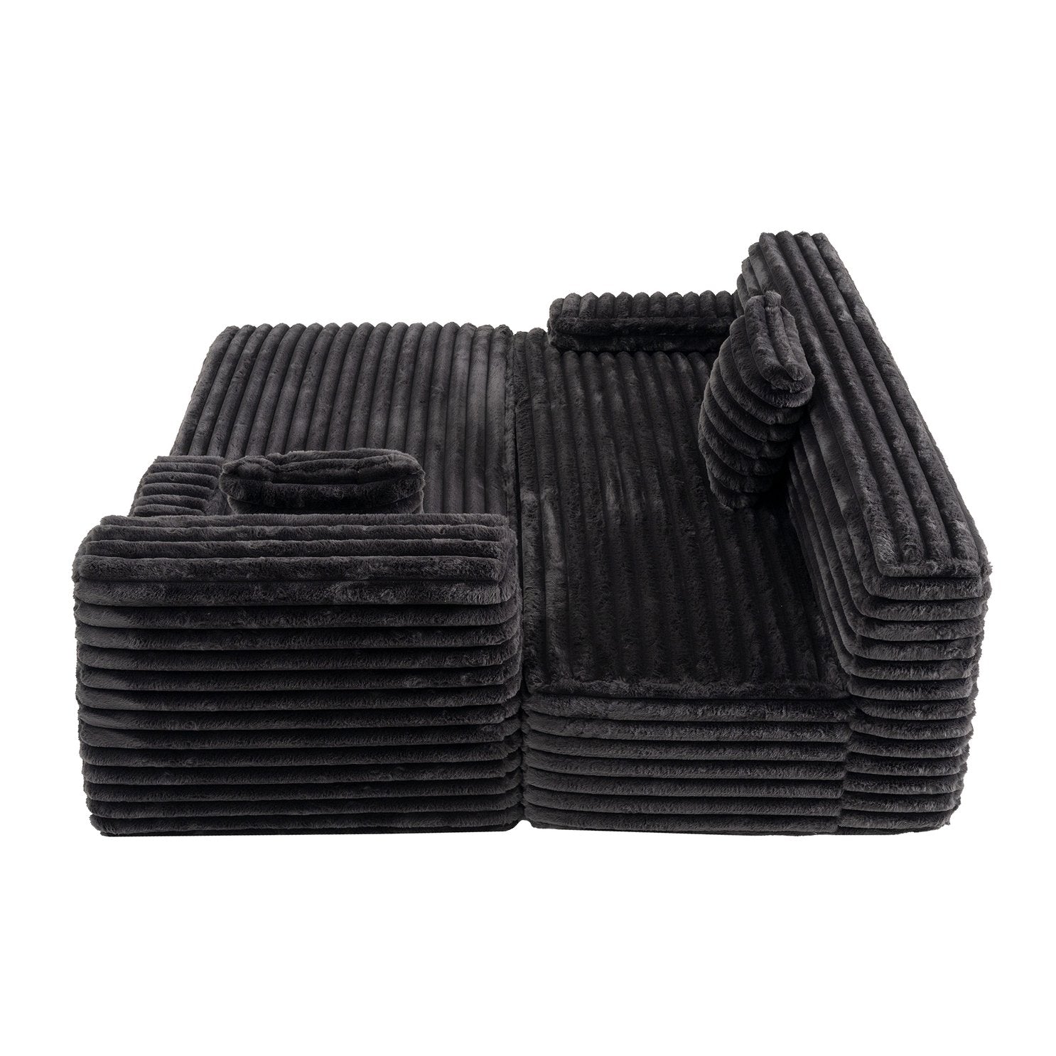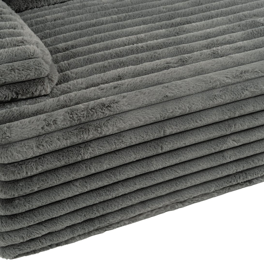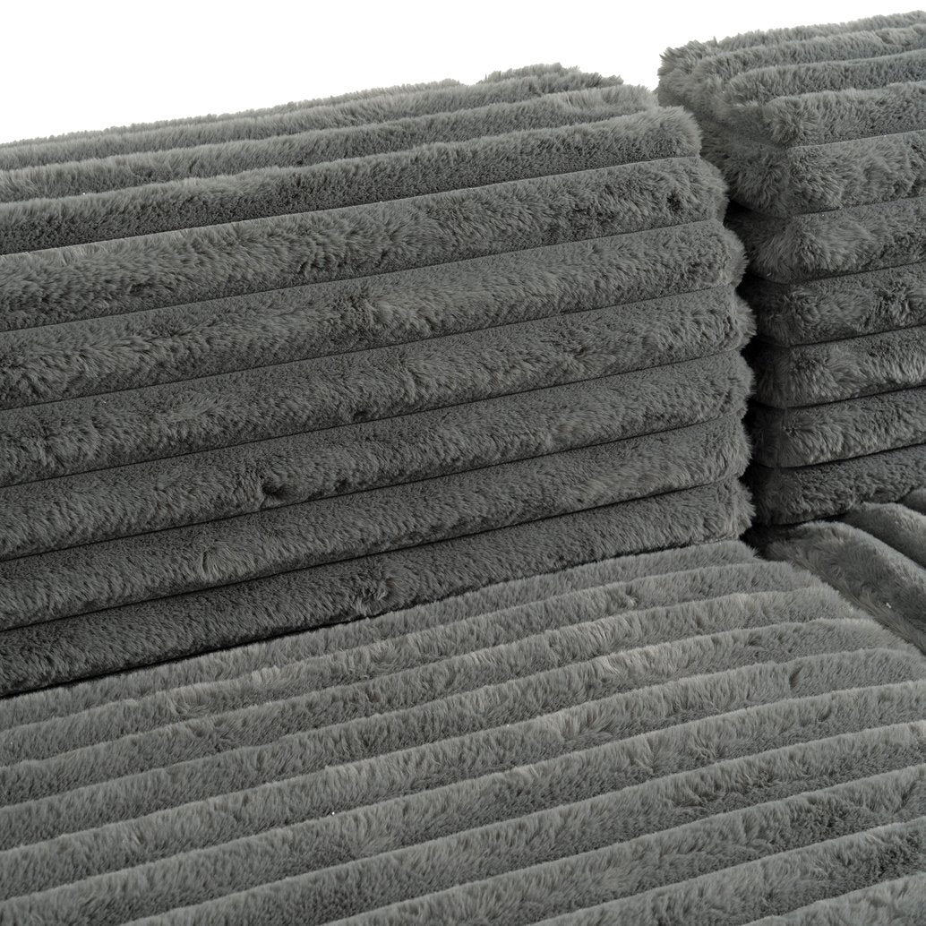 Sink into cloud-like comfort with this versatile, free-combined sectional designed for modern living. Upholstered in ultra-soft faux rabbit fur, the sofa delivers a plush, velvety feel while offering flexible configuration options to suit your space — convert it from an L-shape to a straight sofa or open it up as a sofa bed. Thoughtful details like two removable-coverage throw pillows and a floor-level base for stability make this piece both stylish and practical for everyday use.