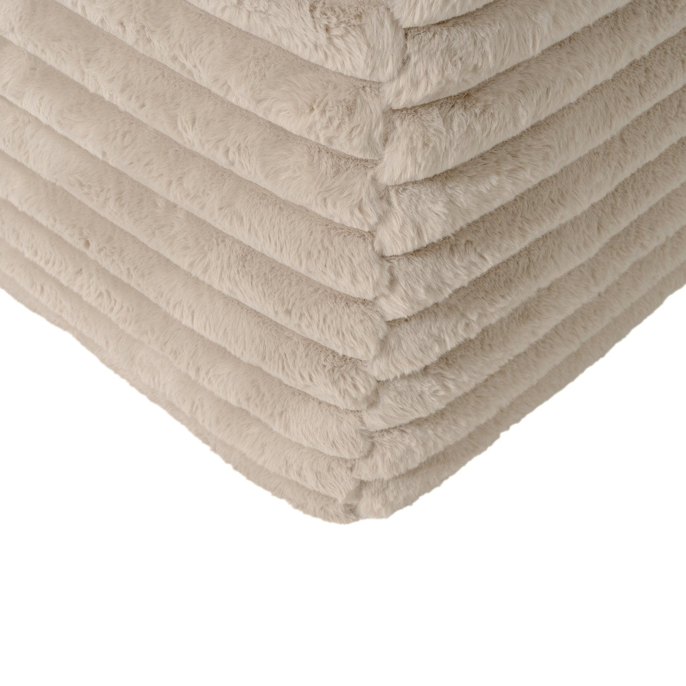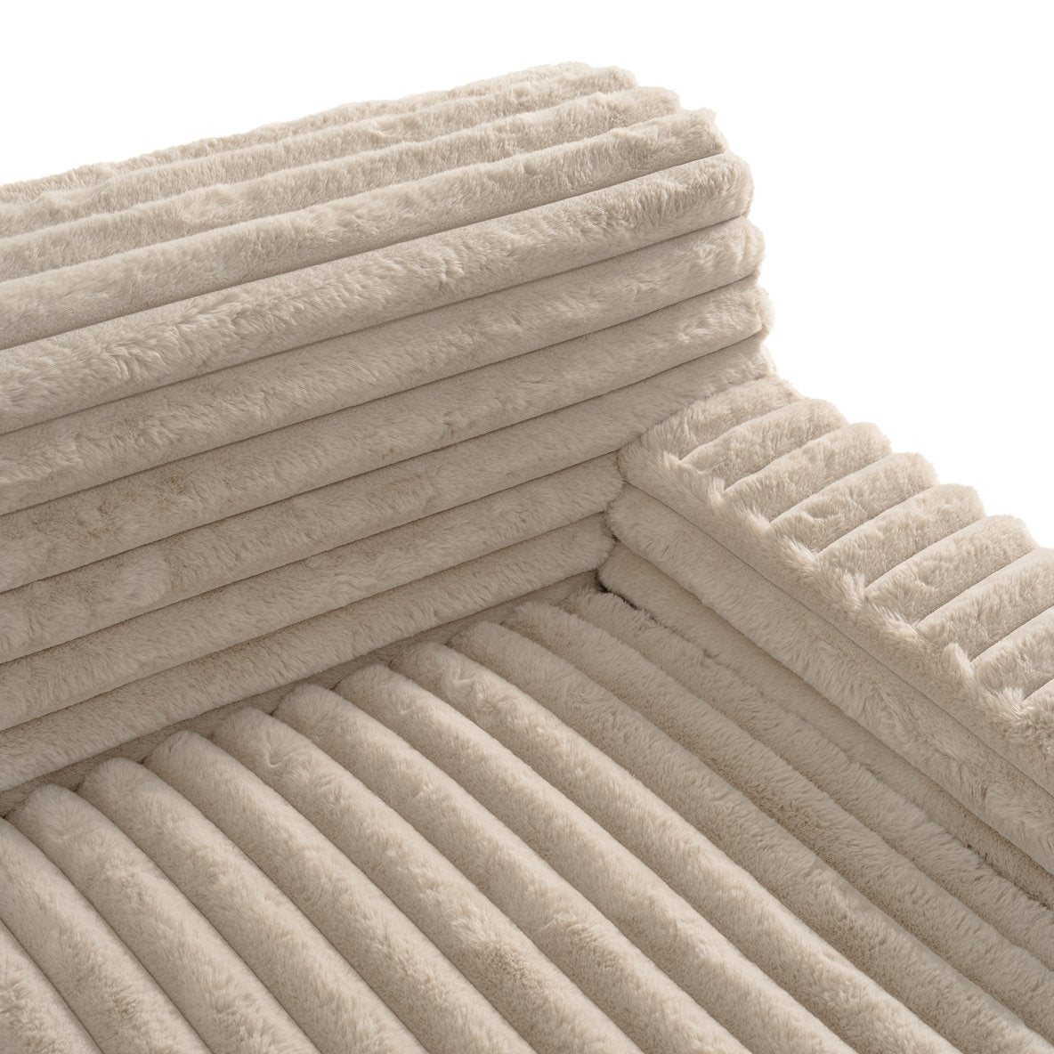 - Color & materials: Beige faux rabbit fur upholstery; seat and frame composed of foam and pocket springs.
