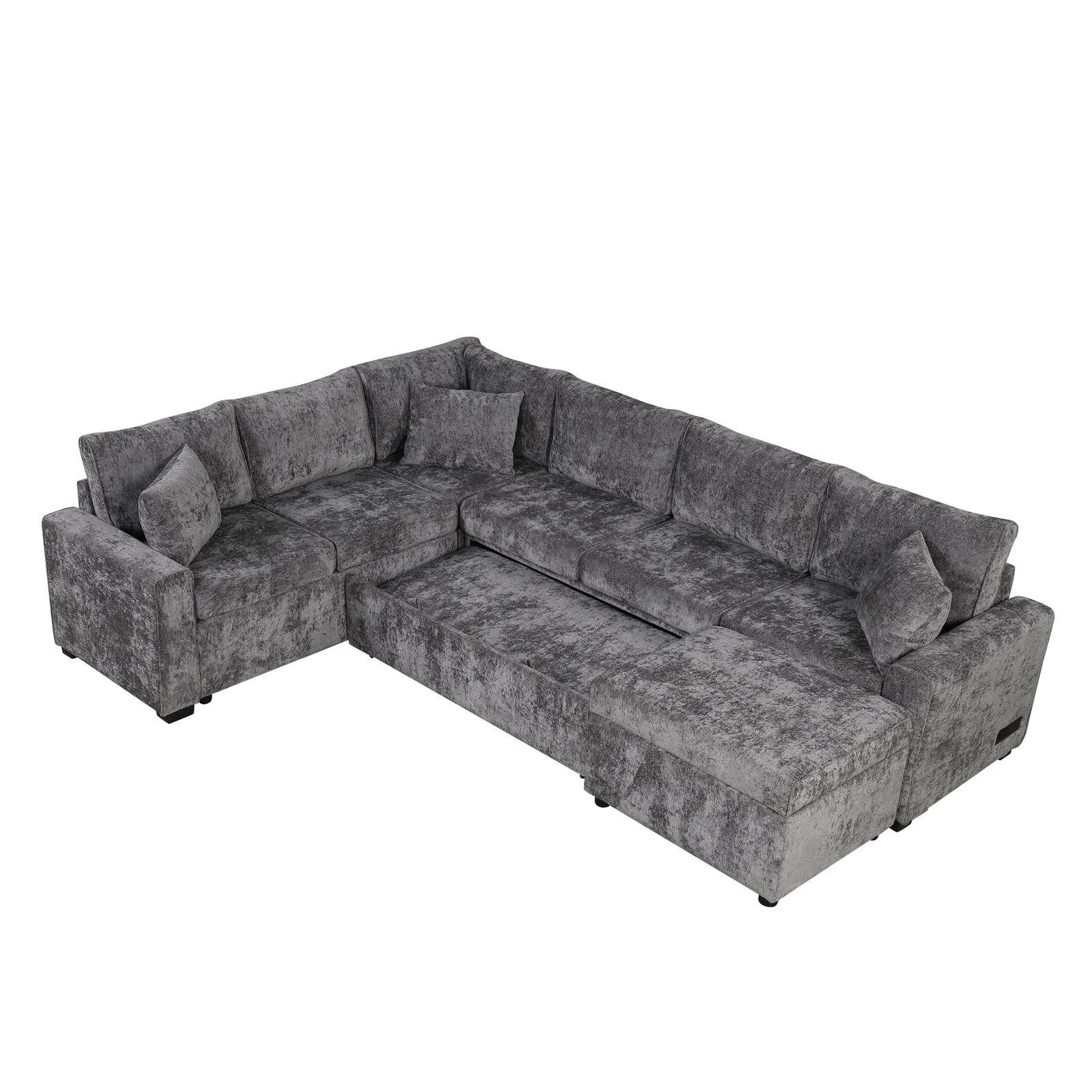 Transform your living space with this versatile cream sectional sofa — designed for comfort, functionality, and modern living. Ideal for families and entertainers, it combines a spacious pull-out sleeper, generous storage ottoman, built-in charging convenience, and supportive cushions upholstered in soft tweed chenille. Thoughtfully constructed with a plywood frame, foam and pocket spring seating, and removable cushions for easy maintenance, this sectional delivers lasting comfort and practical features without sacrificing style.