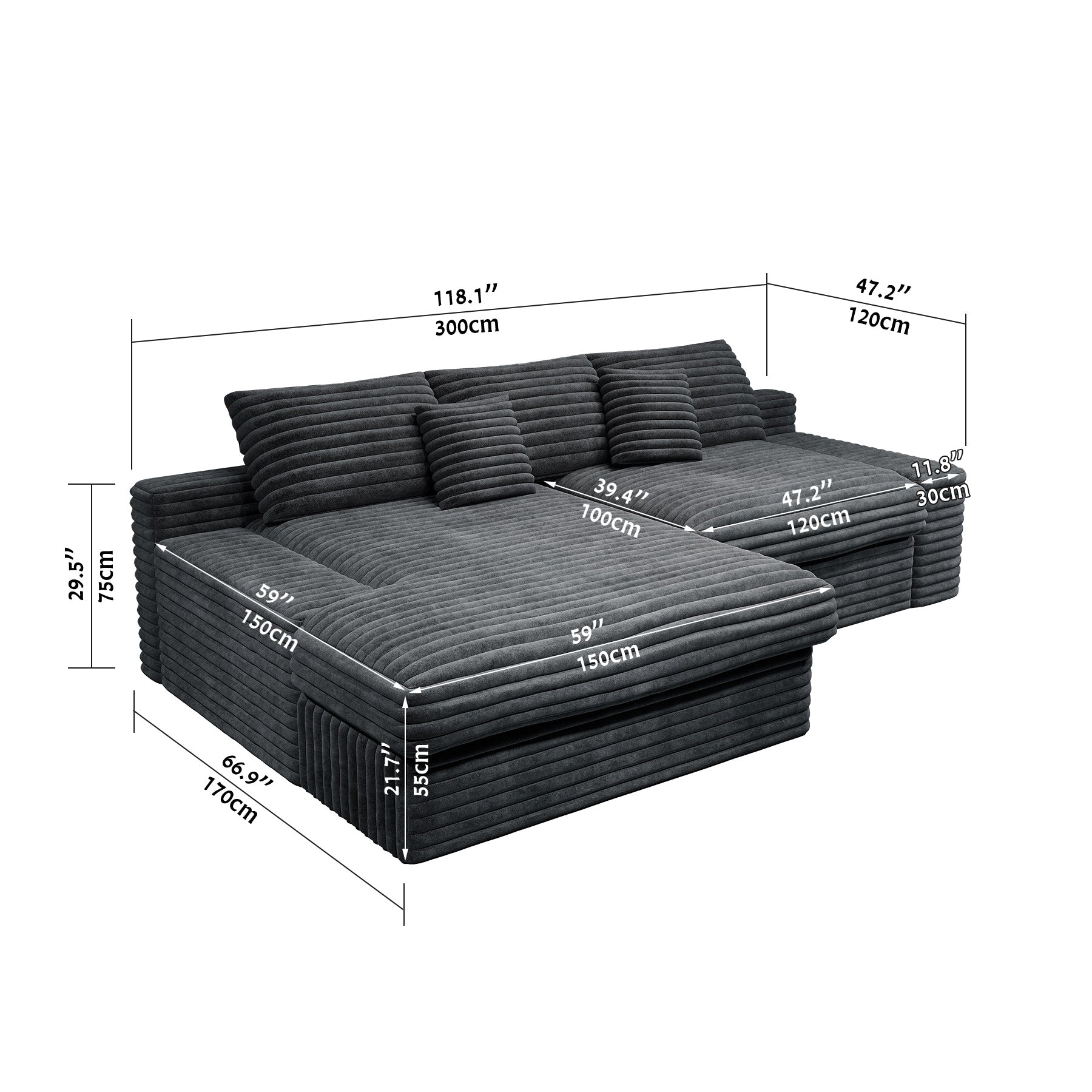 - Modular Sectional Sofa:This sectional sofa featuring a sleek design, clean lines, and high-quality plush corduroy Fabric,This sectional set maximizes space when placed against a wall,this corner sofa effortlessly adds a timeless and sophisticated touch to your home. Designed to be the focal point of attention, it's an ideal choice for elevating the ambiance of living rooms, apartments, and bedrooms.