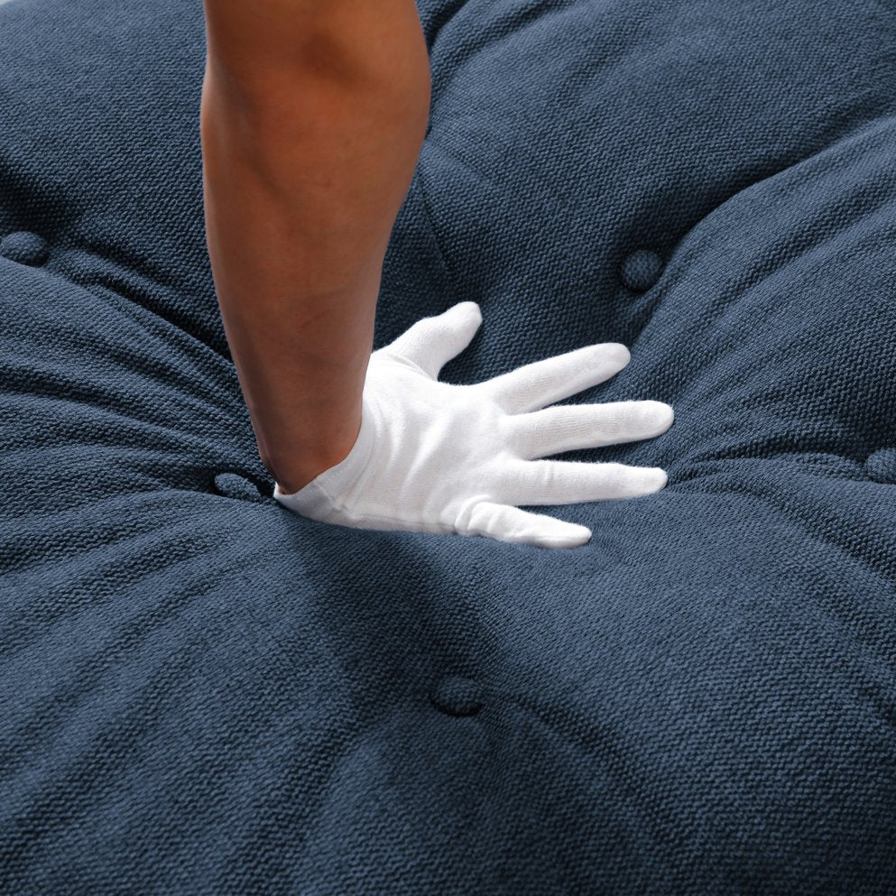 - Upholstery & Color: Long-lasting linen-style fabric in blue combines a soft handfeel with a contemporary look that complements a variety of decor styles.