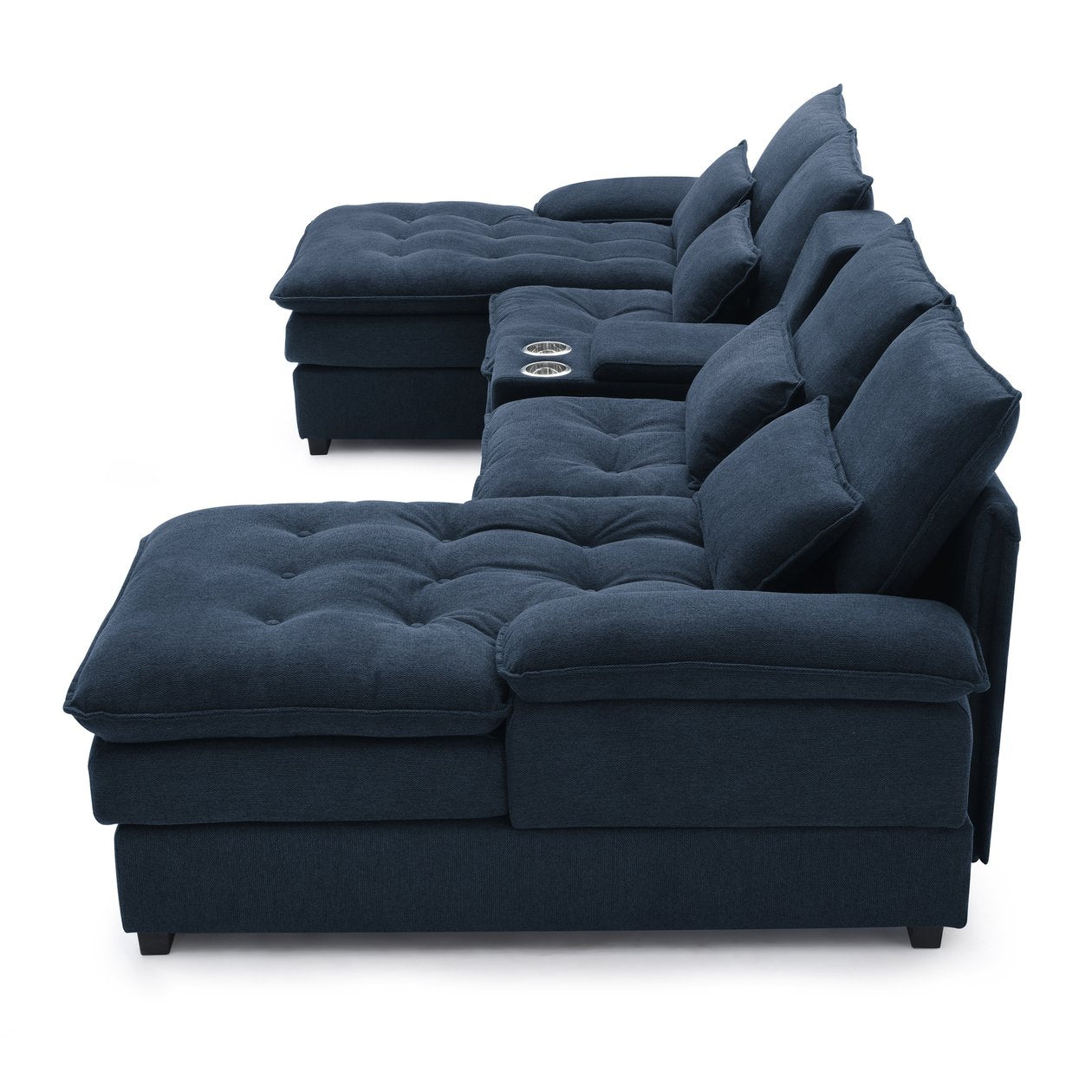 Experience roomy, modern comfort with this 130" U-shaped sectional designed for everyday living and entertaining. Upholstered in soft, durable linen-look fabric, the sofa combines plush double-layer cushioning with pocket-spring support, thoughtful convenience features, and a robust wood-and-iron frame to deliver a supportive, long-lasting centerpiece for your living room, apartment, or media space.
