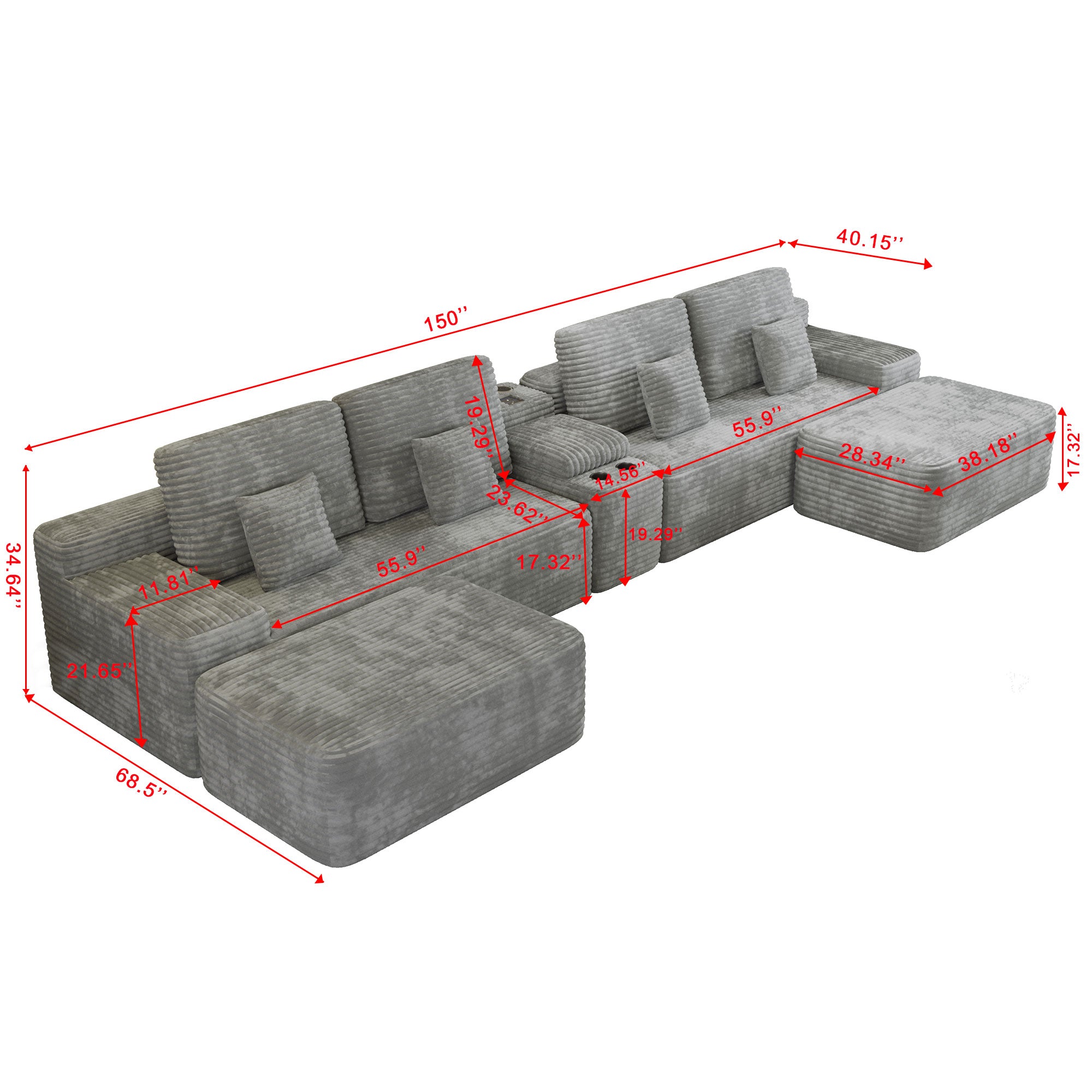 Transform your living space with a versatile, modern U-shaped sectional designed for comfort, convenience, and adaptable layout options. Upholstered in soft black plush corduroy, this 5-piece set includes two ottomans and a multifunctional console to serve as the centerpiece of your living room, lounge, home office, or apartment. Its modular design lets you reconfigure the pieces quickly to suit different needs—from a roomy U-shaped gathering spot to an L-shape, straight partitioned sofa, sleeper sofa, or two separate twin sofa beds.