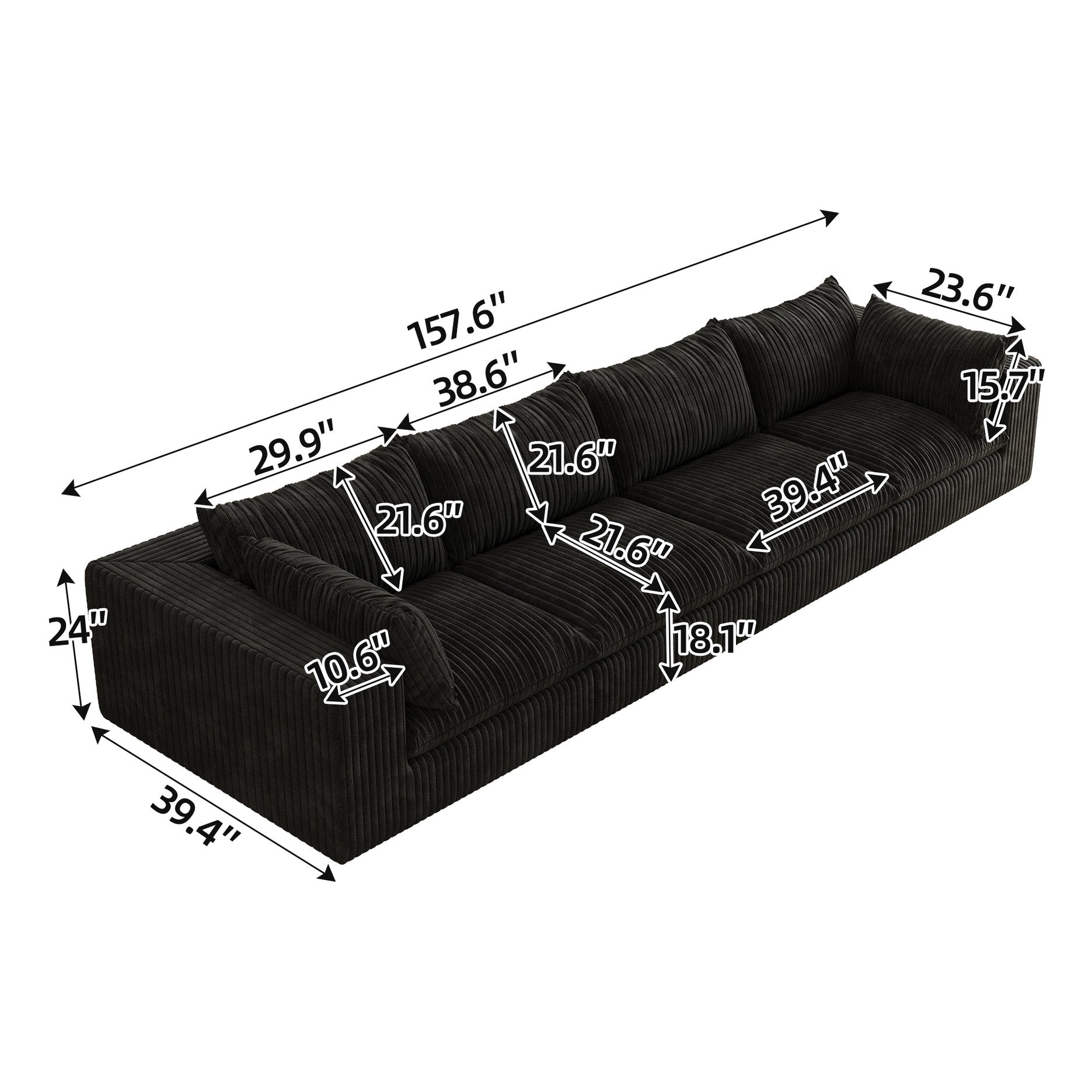 Sink into cloud-like comfort with this oversized modular sofa, designed for versatile living. Upholstered in soft black corduroy, it combines feather-filled cushions and high-density sponge support for a plush, supportive seat. The double-layer, no-assembly design and movable modules let you configure seating for living rooms, bedrooms, conference spaces, or apartments—delivering both luxury and practical convenience.