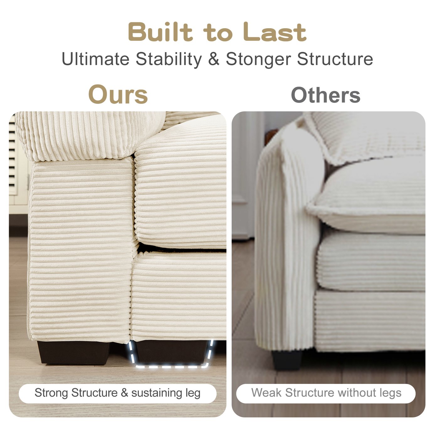 - Premium Material Craftsmanship:Upholstered in soft, high-density corduroy fabric, the sofa offers a smooth and delicate touch. Its unique velvety texture creates a luxurious seating feel suitable for year-round use. The durable and wear-resistant fabric, combined with high-quality sponge seat cushions and a solid wood frame, ensures long-lasting comfort and reliability through stable support.