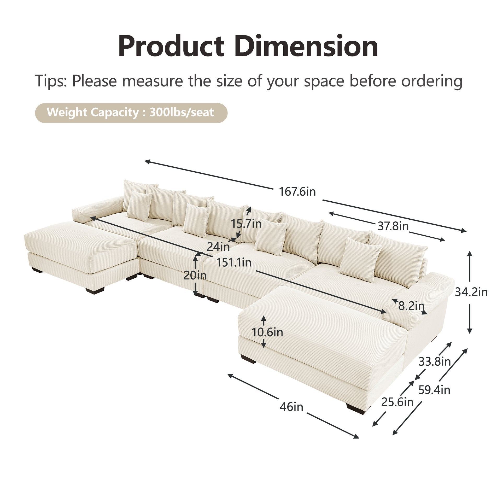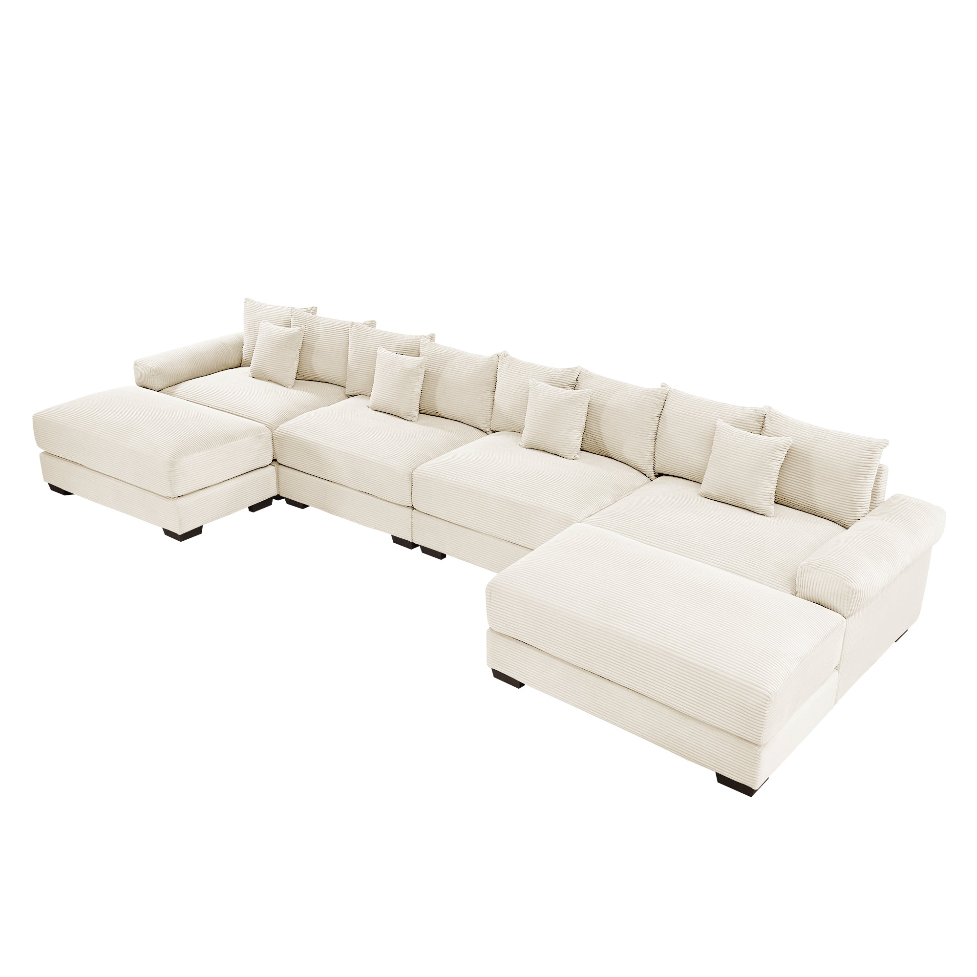 Sink into cloud-like comfort with this oversized modular U-shape sectional, upholstered in premium corduroy for a soft, velvety feel and designed to accommodate large living spaces or open-plan layouts. Thoughtfully engineered for lounging, reading, and versatile entertaining, the sectional pairs deep seating and supportive cushions with a sturdy solid-wood frame and customizable configuration options — including a matching ottoman — so you can create a personalized seating arrangement that suits your home.