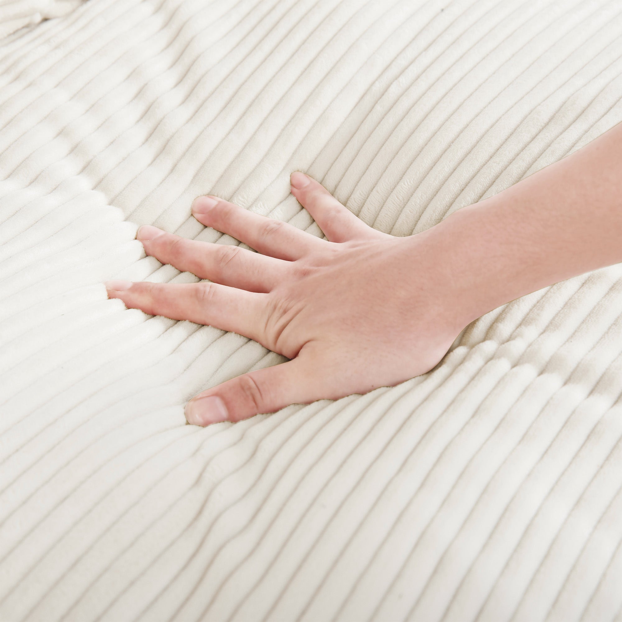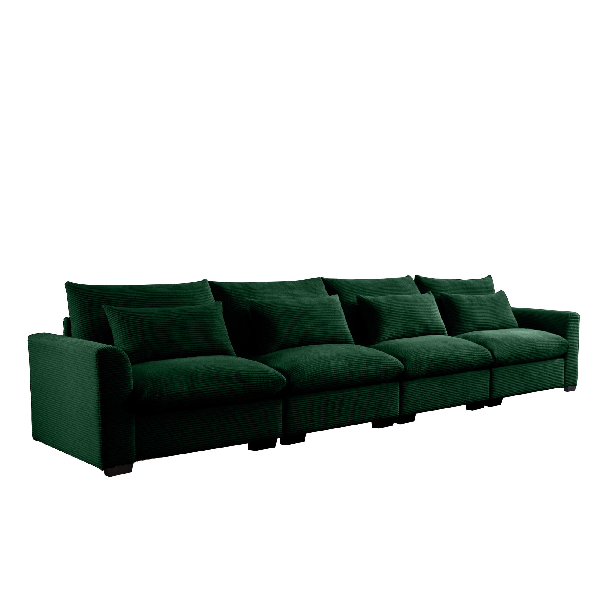 - Superior comfort - extended deep seats allows you to sit cozy on the sofa, soft waist pillow to offer excellent support to your waist, ergonomic seat angle eliminating your fatigue of the day and bringing a full sense of security and comfort. Back and seat cushion are upholstered with comfortable high-density foam cushions for ultimate comfort and support.The back cushions and seat cushions are soft and fluffy, and the stripped corduroy fabric gives it a cloud-like wrapping feel.