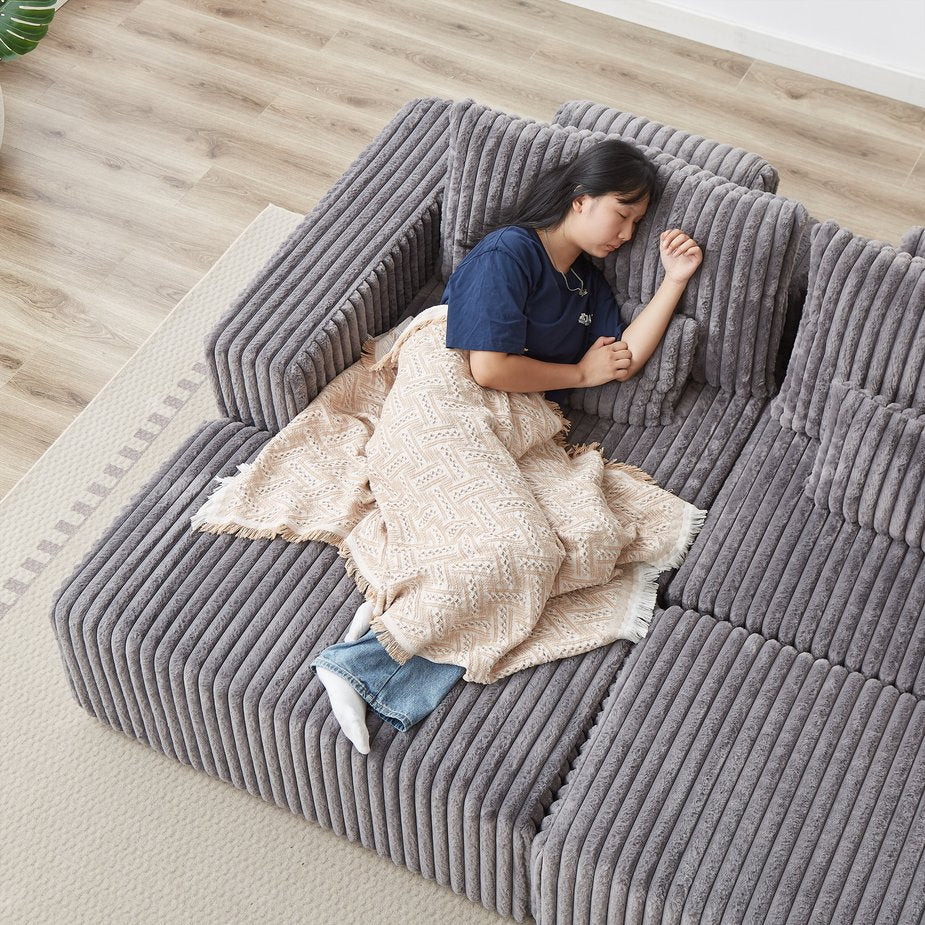 Sink into cloud-like comfort with this oversized sectional lounge chaise—designed for effortless relaxation and modern living. Upholstered in plush grey corduroy, this modular loveseat comes ready to enjoy with no assembly required. Its versatile configuration, supportive backrest pillow, and two removable footstools make it ideal for lounging, napping, or creating extra seating in living rooms or bedrooms.