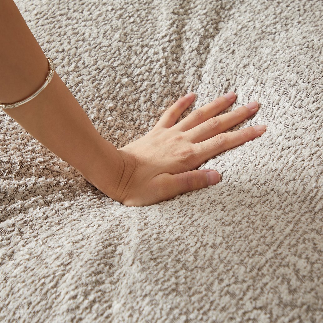 Transform your living space with this contemporary 99-inch chenille curved sectional that blends cloud-like comfort with adaptable design. Upholstered in soft beige chenille, the L-shaped, boneless silhouette and deep seats invite relaxation while thoughtful details—reversible chaise, neck pillows, and reinforced support—ensure lasting comfort and practicality for living rooms or bedrooms. No assembly required means it’s ready to use right out of the box.