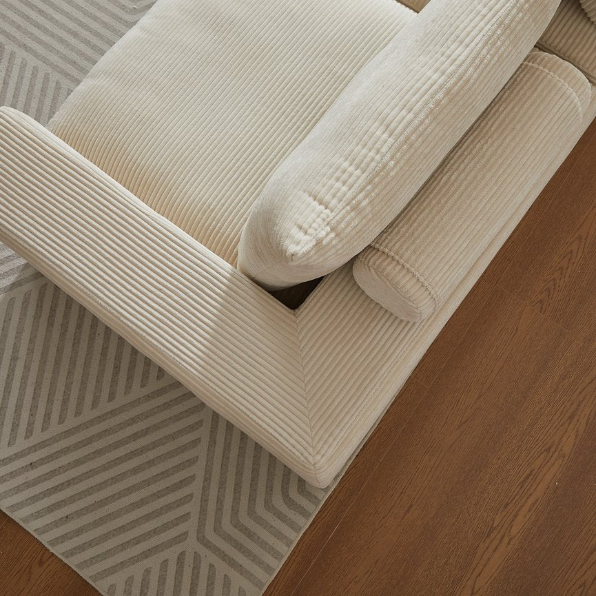 - Material & Finish: Soft, durable corduroy upholstery in Beige for a cozy, contemporary look