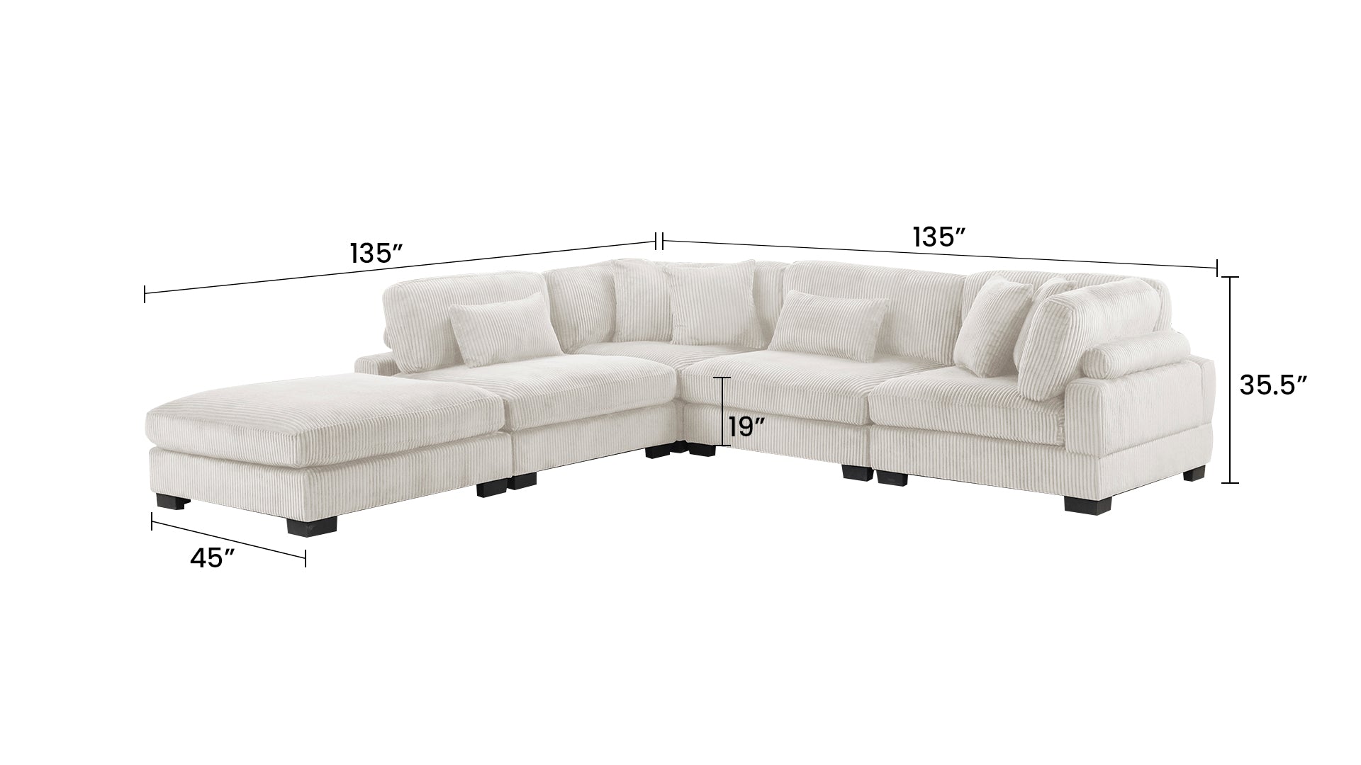 Sink into the Bentley Setup 2 — a modern modular sectional that pairs structured silhouettes with the cozy texture of cream corduroy. Designed for versatility, this L-shaped arrangement creates an inviting focal point for living rooms, family spaces, or media areas, delivering both comfort and contemporary style with easy reconfiguration.