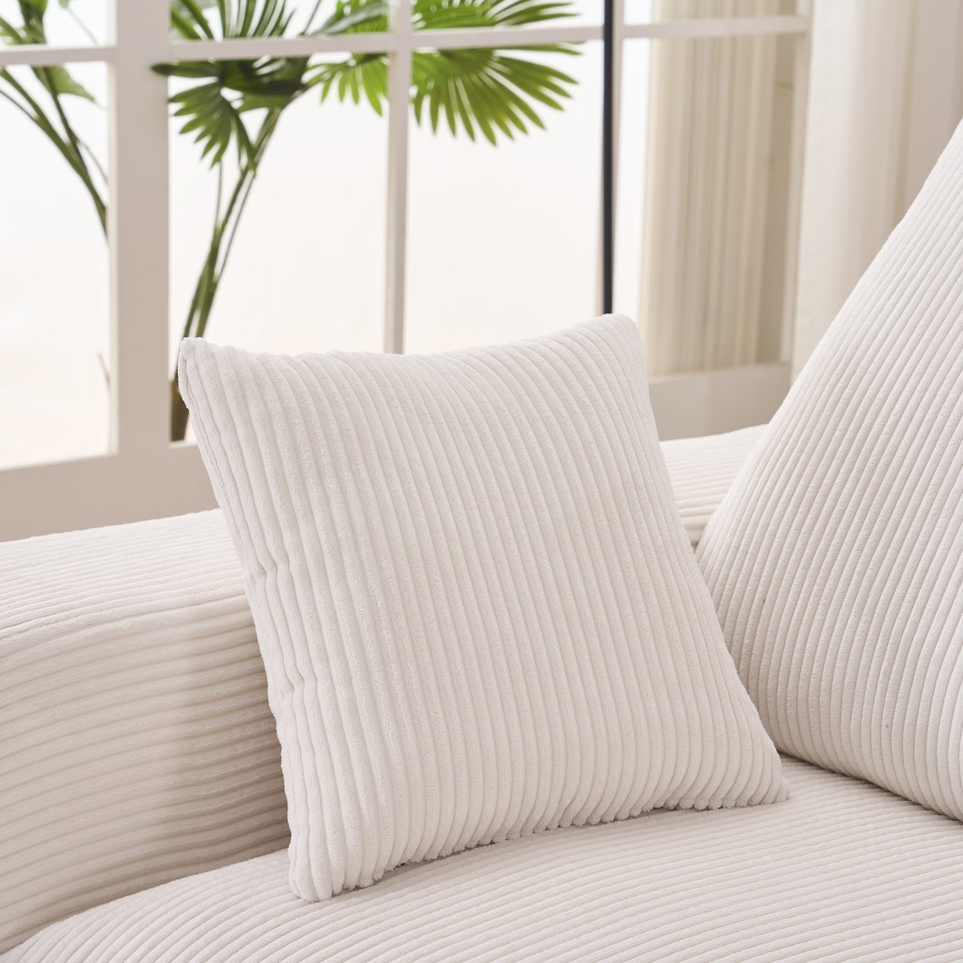 - Luxury Corduroy Upholstery: Soft, textured corduroy fabric in beige and white that’s both stylish and easy to maintain.