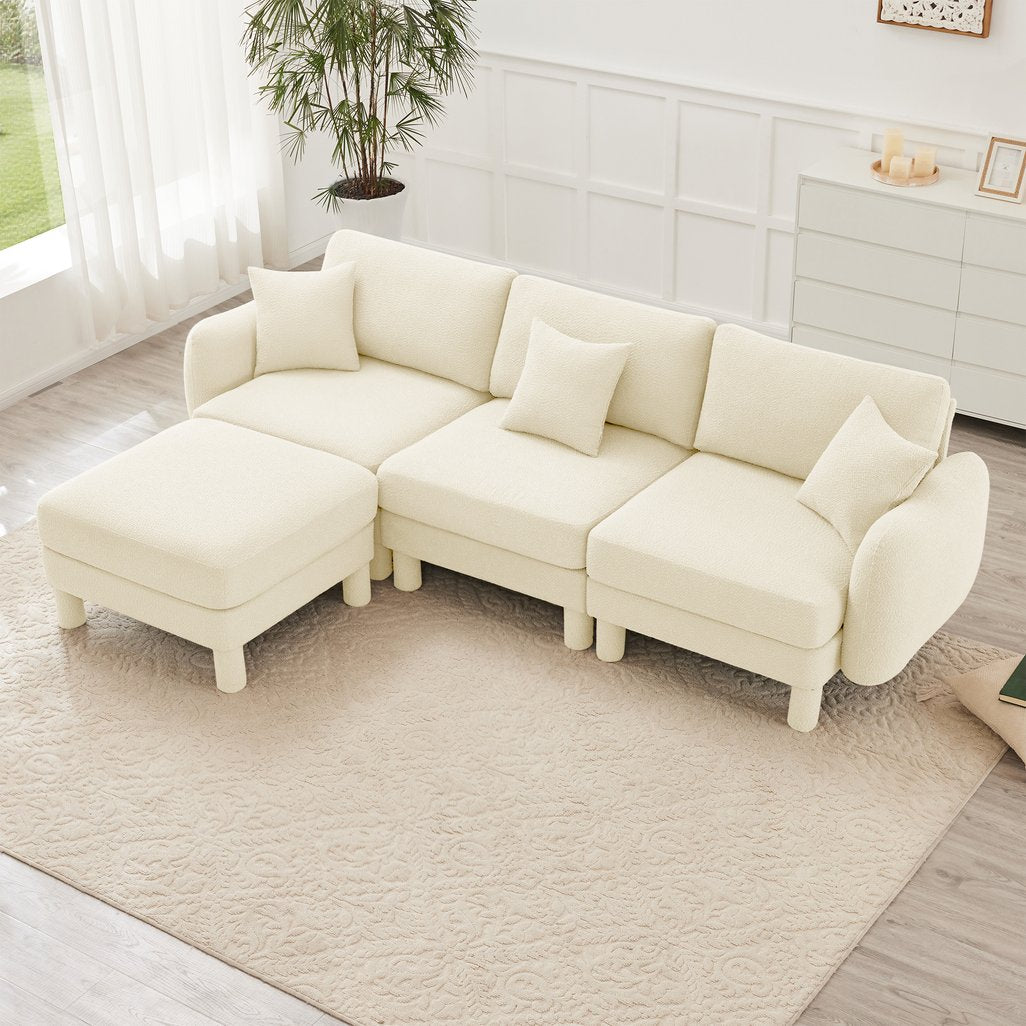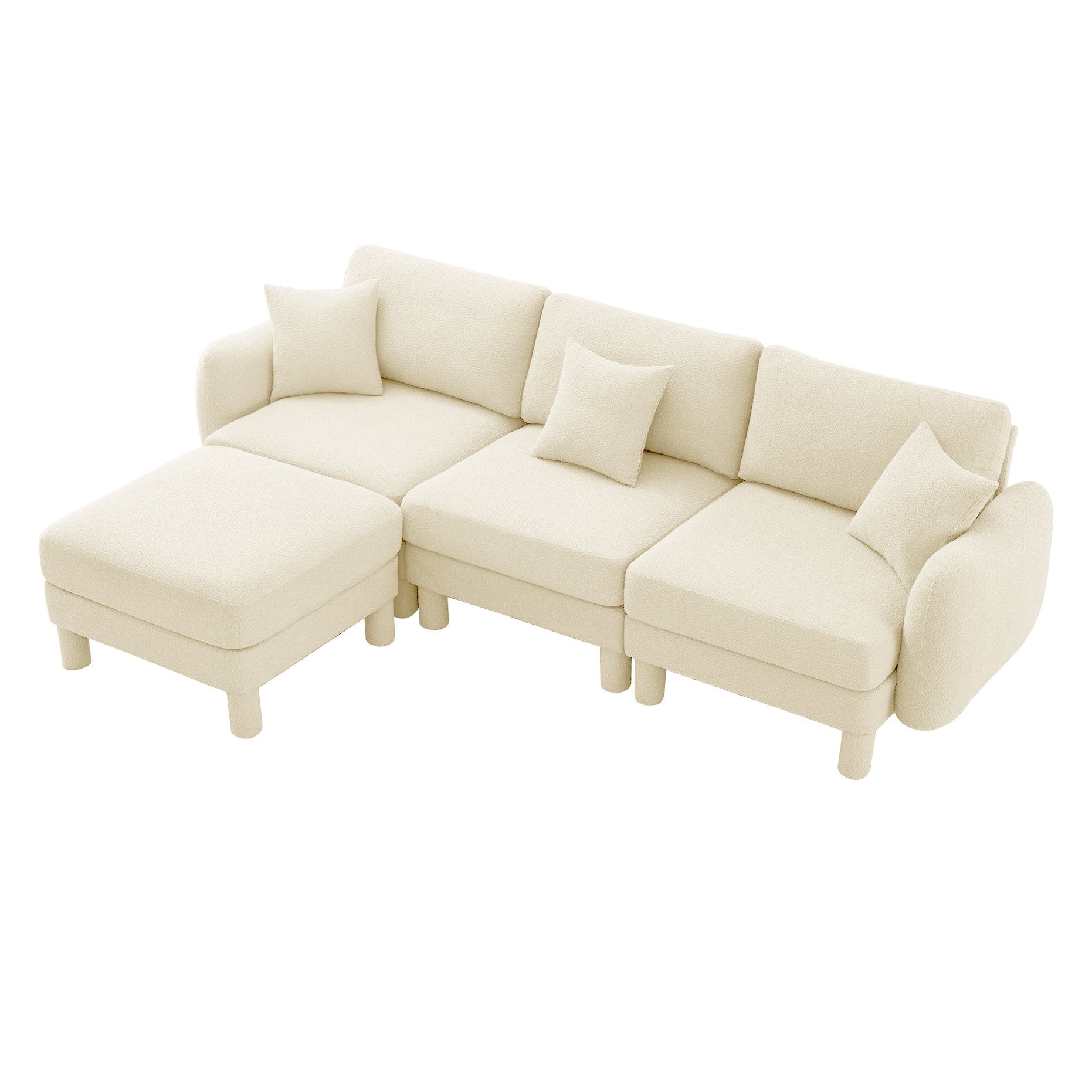 Transform your living space with this elegant boucle fabric L-shaped sectional—designed to combine modern style with everyday comfort. With distinctive shell-shaped armrests, cylindrical legs wrapped in matching fabric, and a removable ottoman for flexible seating, this 3-seater convertible sofa is ideal for living rooms, lounges, or guest spaces that demand both sophistication and functionality.