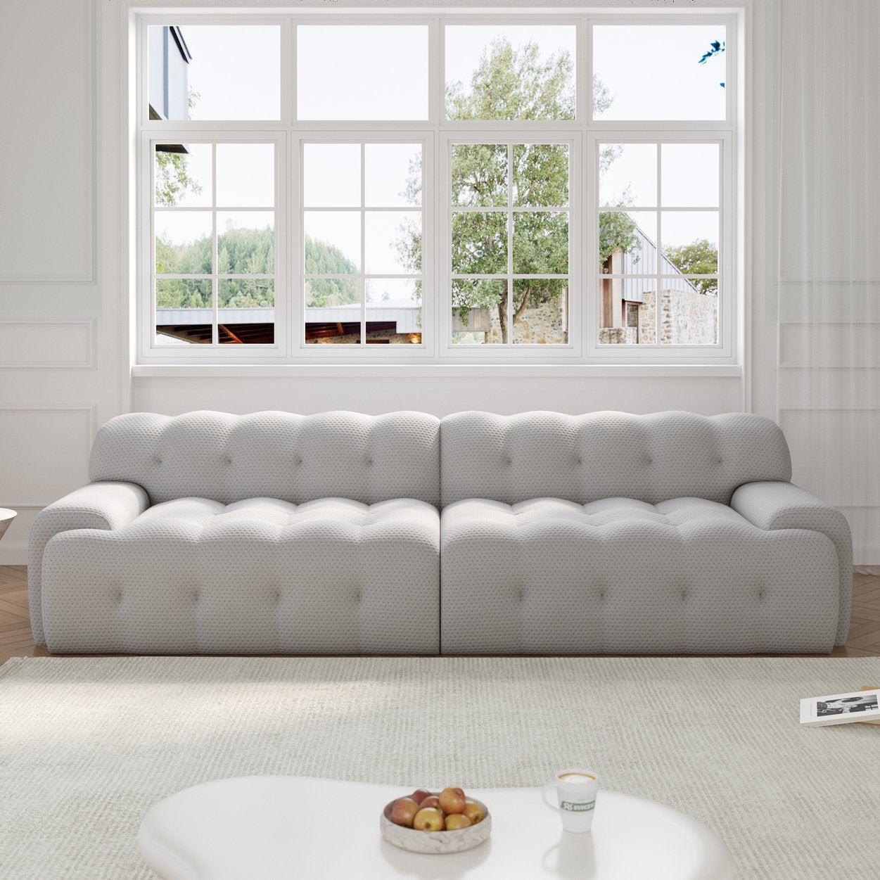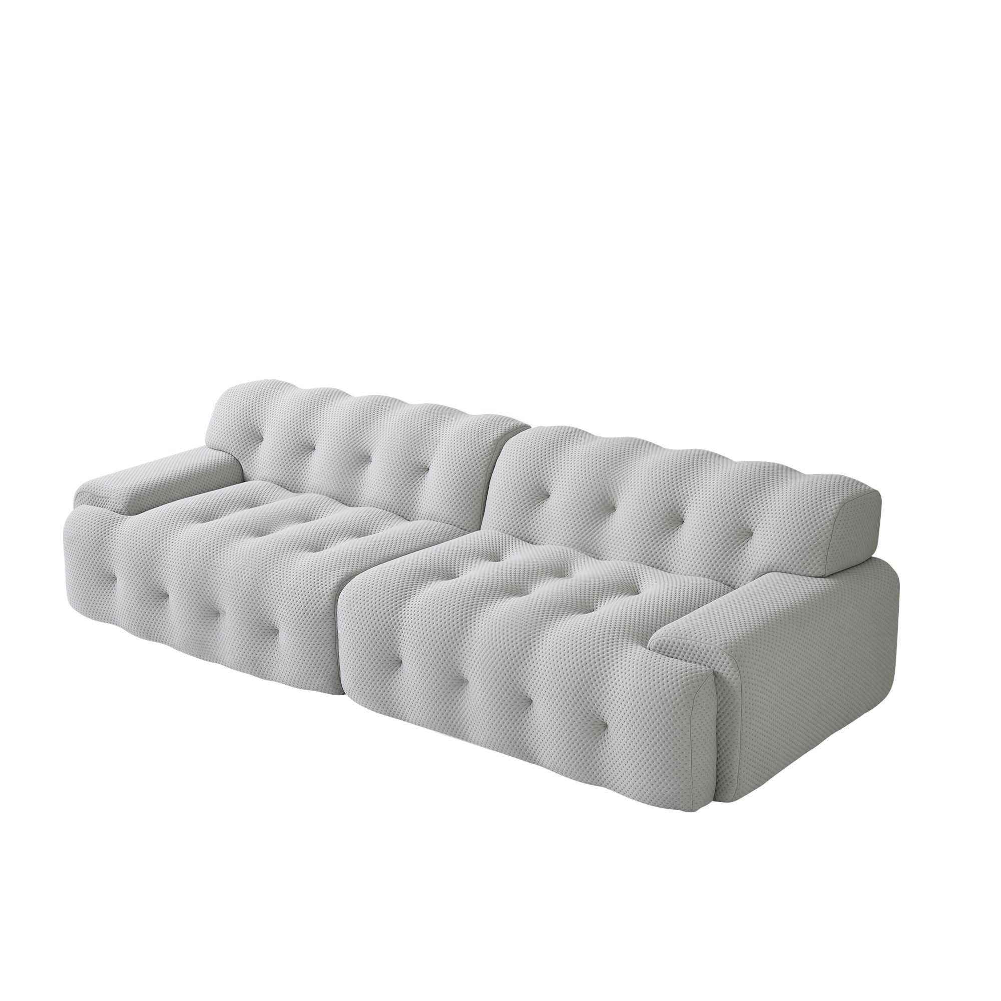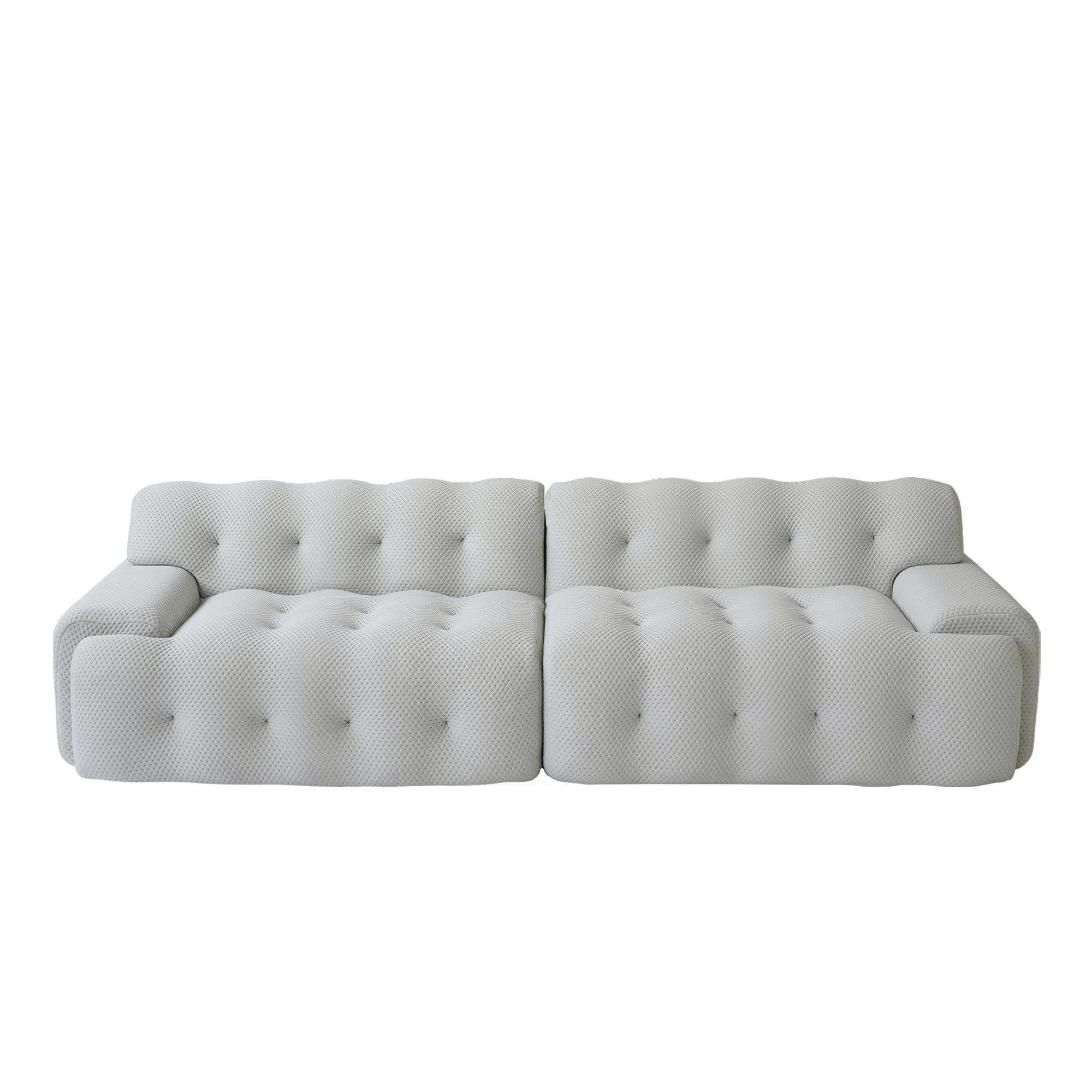 Bring a playful yet refined presence into your living space with this modern armless sofa. Inspired by natural curves like waves and rolling hills, its lively rounded silhouette and capitonné tufting combine sculptural design with everyday comfort. Upholstered in breathable 3D-knitted fabric and filled with high-density foam, this piece invites both relaxed lounging and stylish presentation—perfect for contemporary, minimalist, or cozy modern interiors.