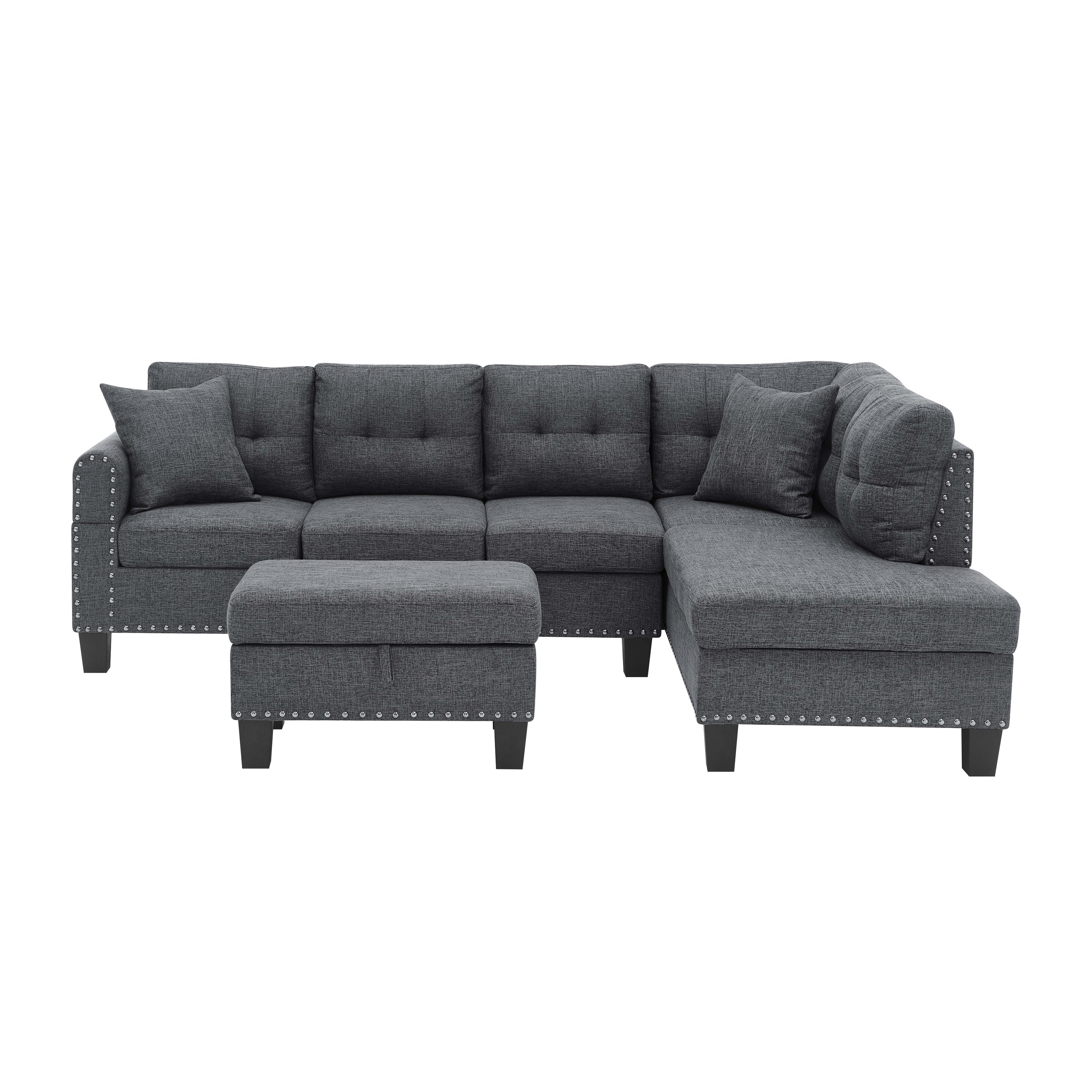 - Design & Upholstery: Durable polyester fabric with deep tufted back cushions, nailhead trim, and clean, structured lines for a sophisticated contemporary look.
