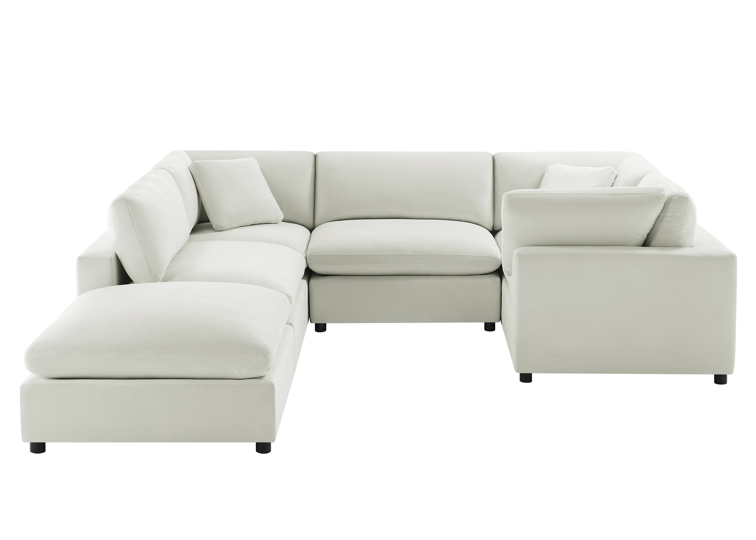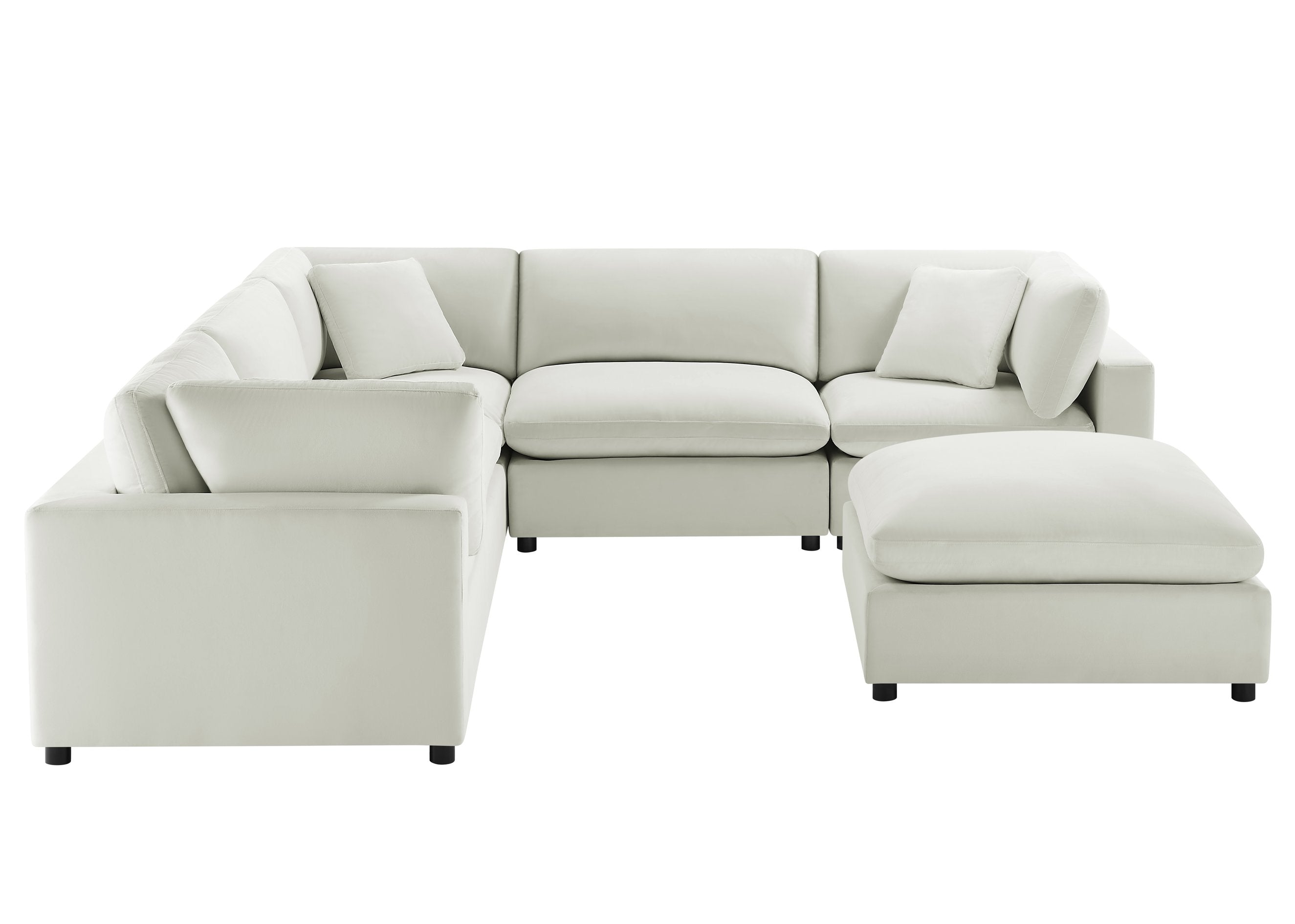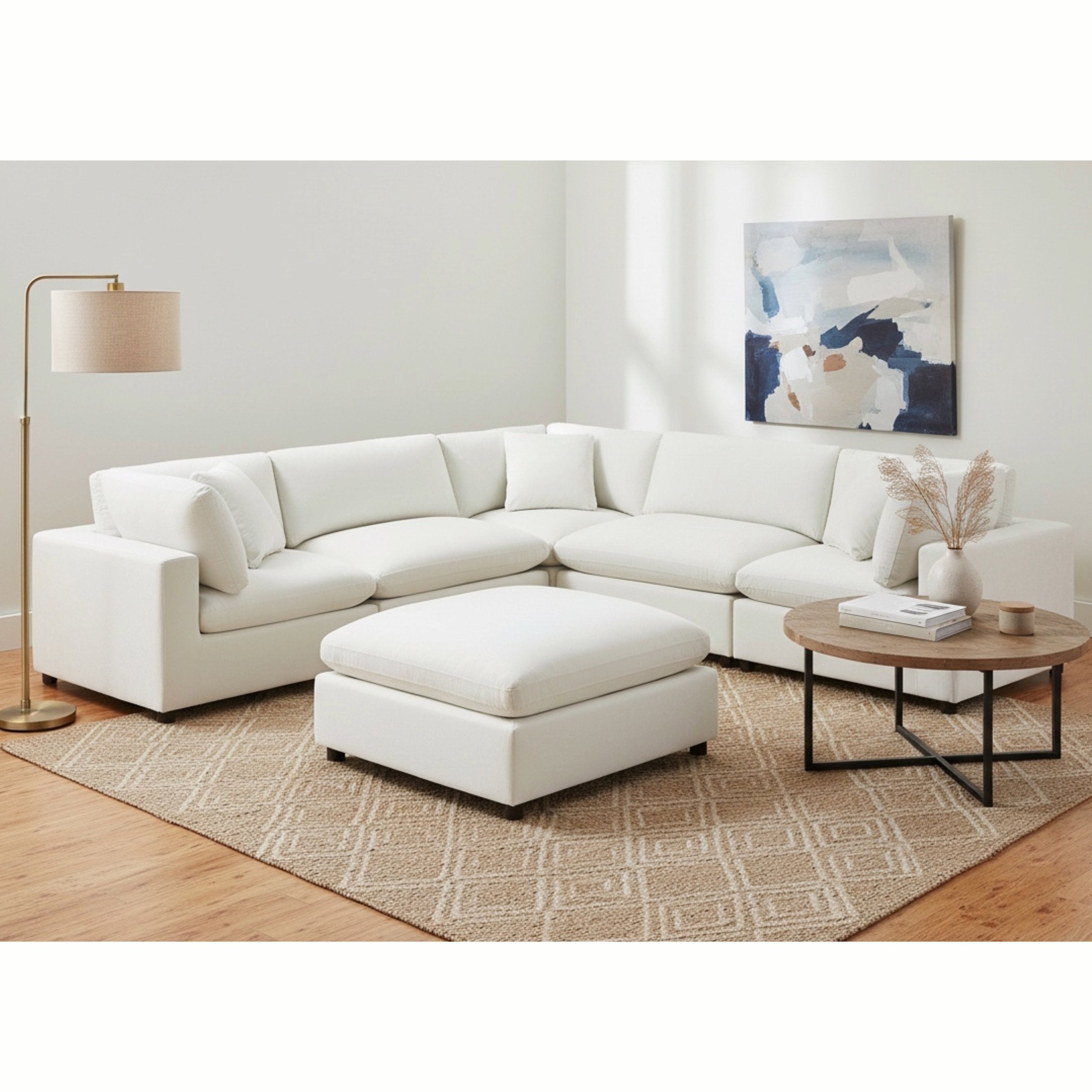 Sink into versatile, family-ready comfort with this modular 6-piece sectional crafted for everyday living. Its durable hardwood frame, plush down-and-fiber filled cushions, and configurable pieces let you create seating arrangements that suit movie nights, gatherings, or relaxed lounging — all wrapped in a soft, pet- and kid-friendly ivory polyester upholstery.