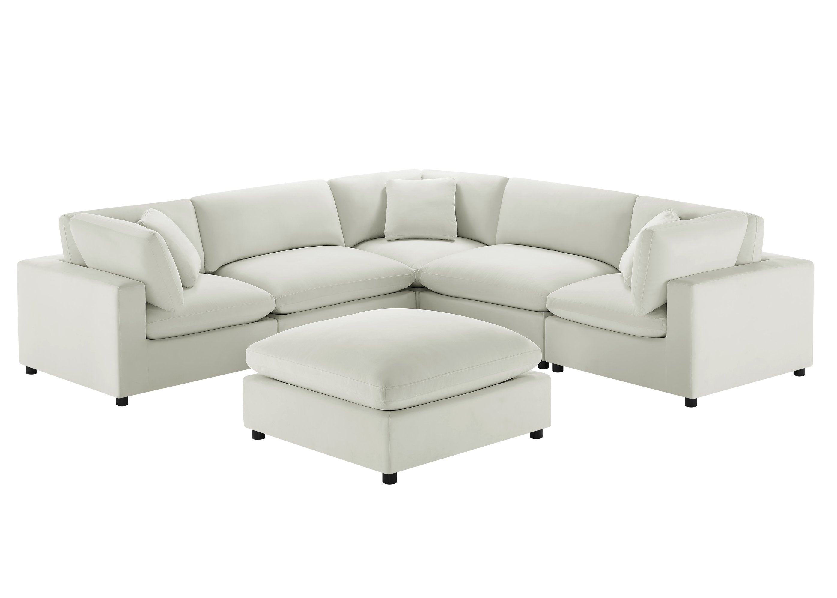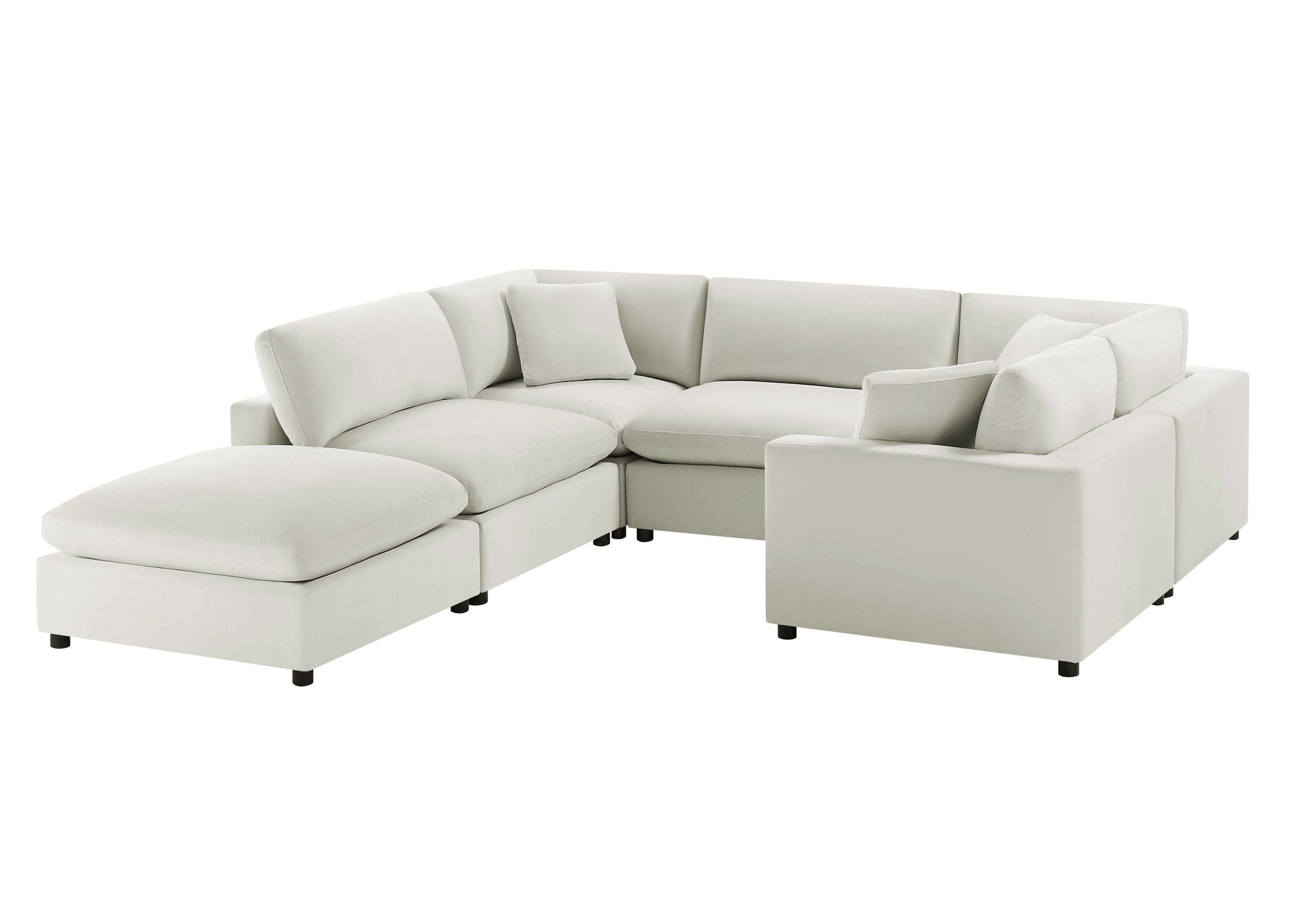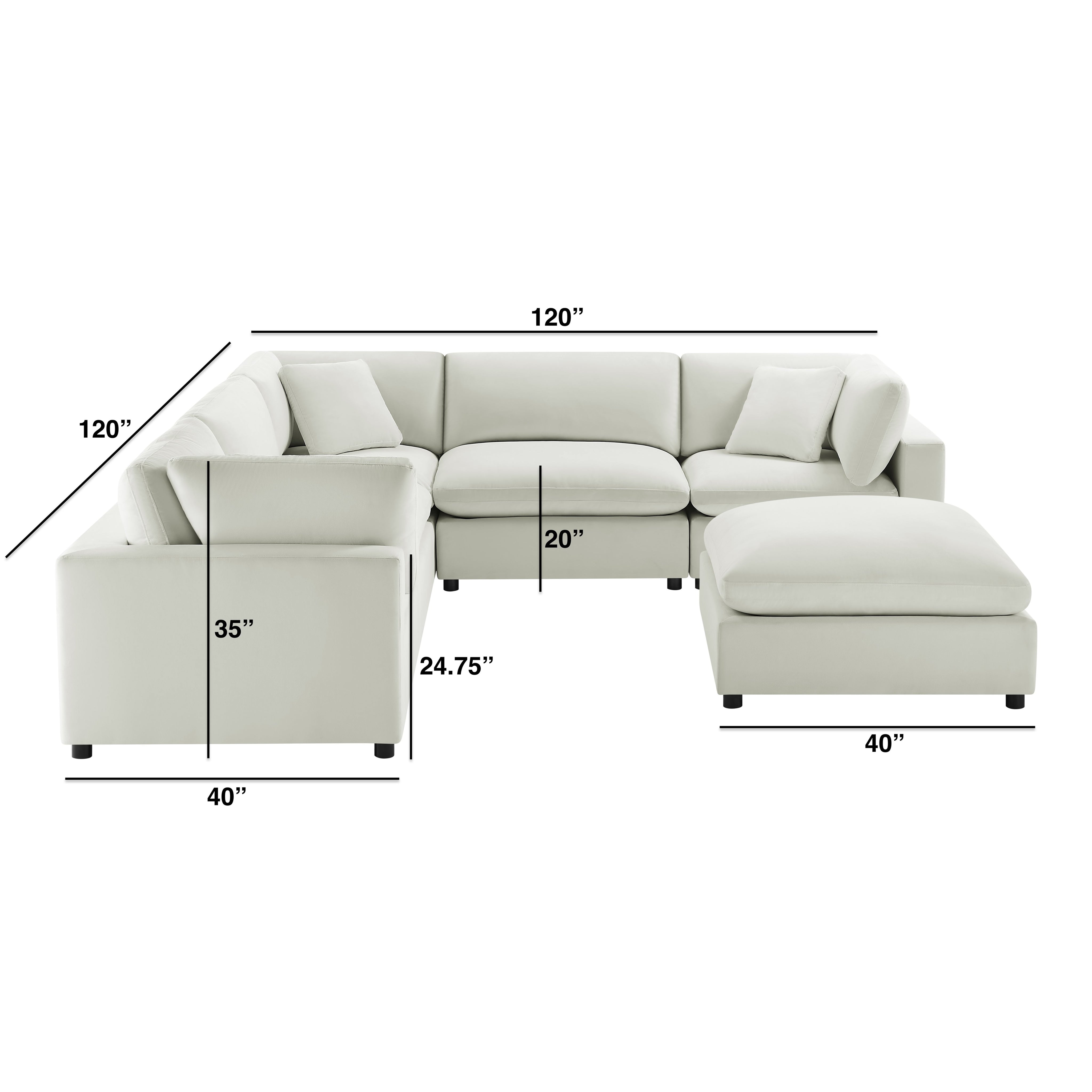 Sink into versatile, family-ready comfort with this modular 6-piece sectional crafted for everyday living. Its durable hardwood frame, plush down-and-fiber filled cushions, and configurable pieces let you create seating arrangements that suit movie nights, gatherings, or relaxed lounging — all wrapped in a soft, pet- and kid-friendly ivory polyester upholstery.